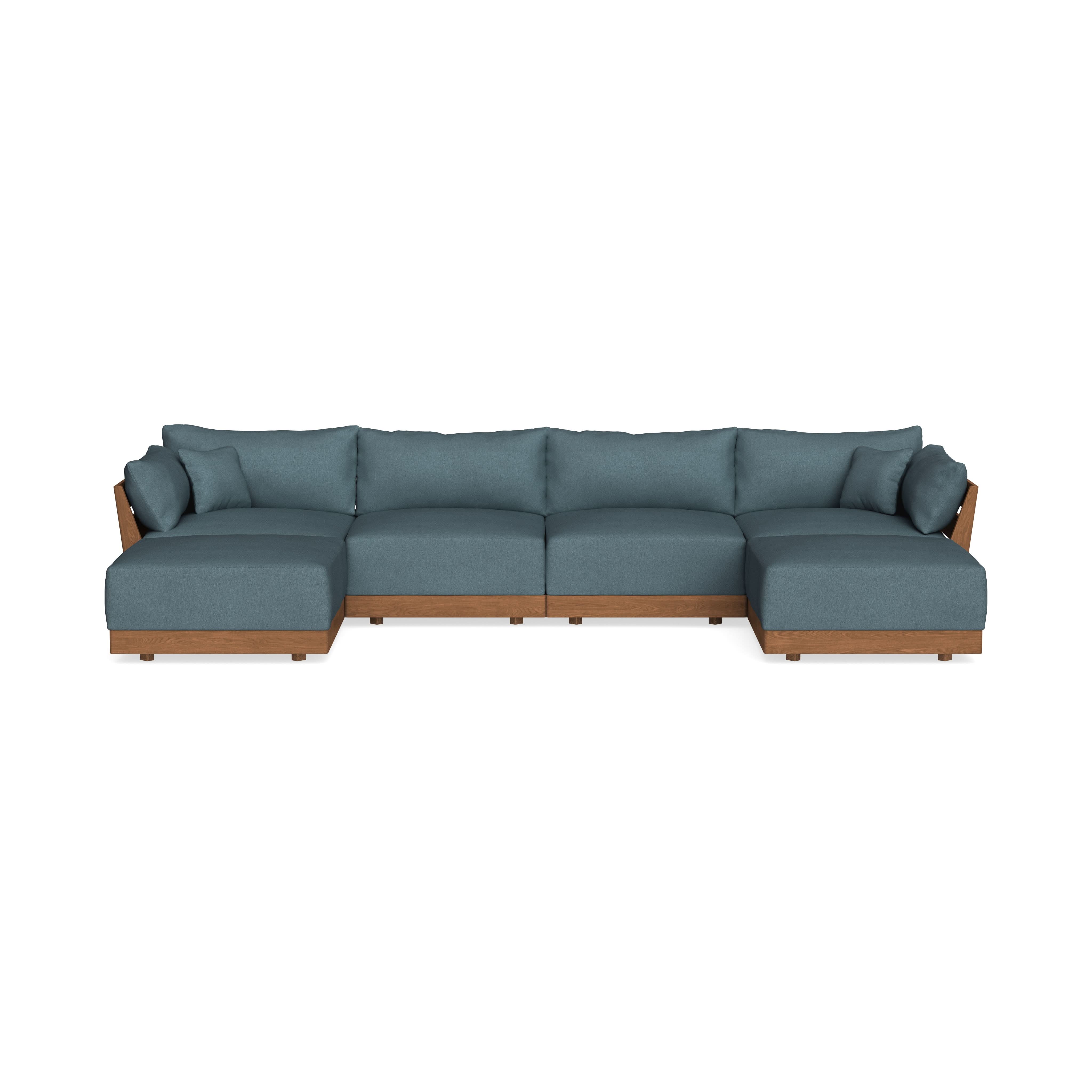 Modular Bondi Espresso 4-Seater U-Sectional in Slate Blue | Memory Foam Blend