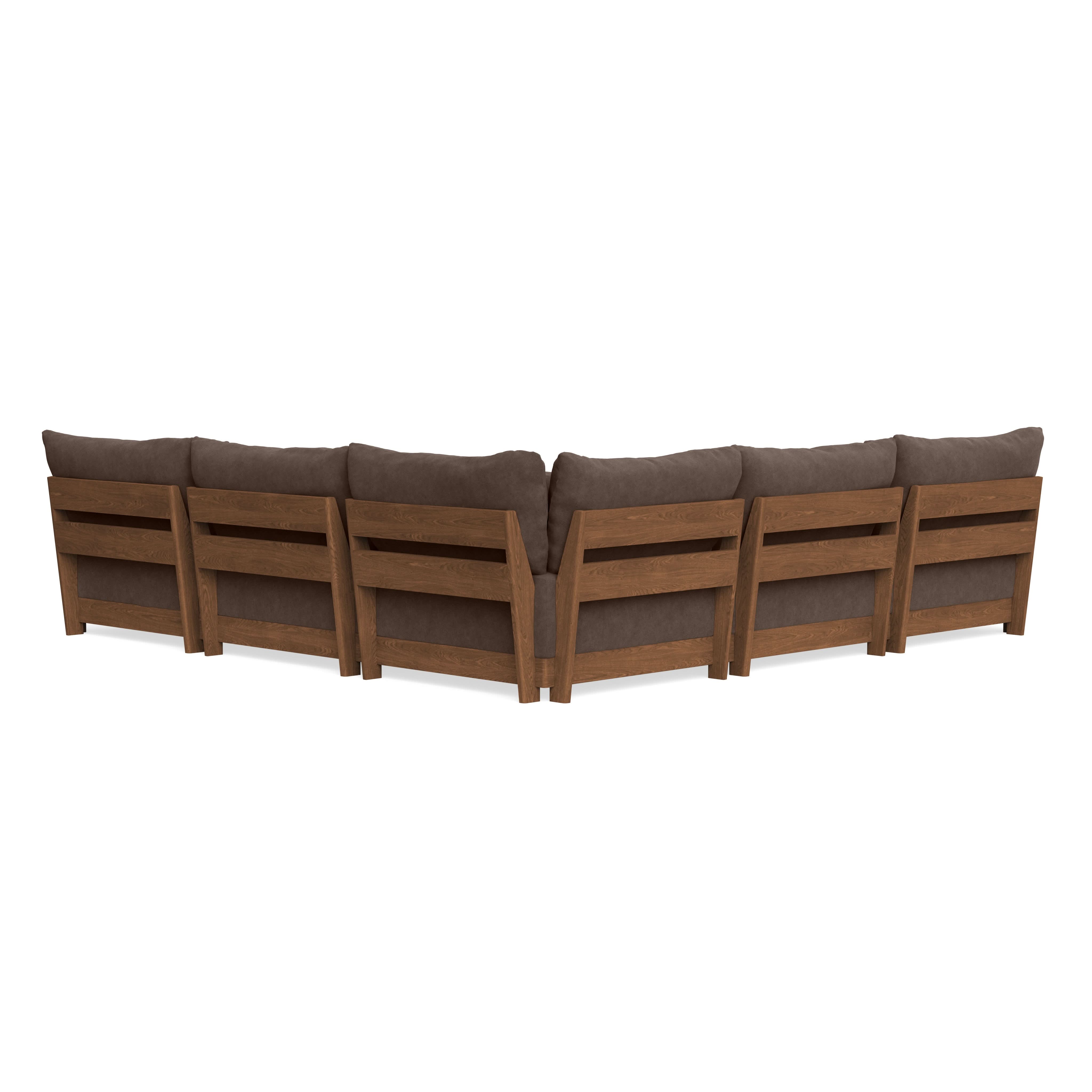 Every seat block is alike and can be used in the middle, on the end, or as a corner piece in your sofa. Each solid wood arm/back panel is identical and can be attached to any three sides of a seat block. Ottomans are adaptable too, as they can stand alone or serve as an extension to your sofa by being attached to any seat block at its base. Note that arm/back panels cannot be attached to an ottoman base.