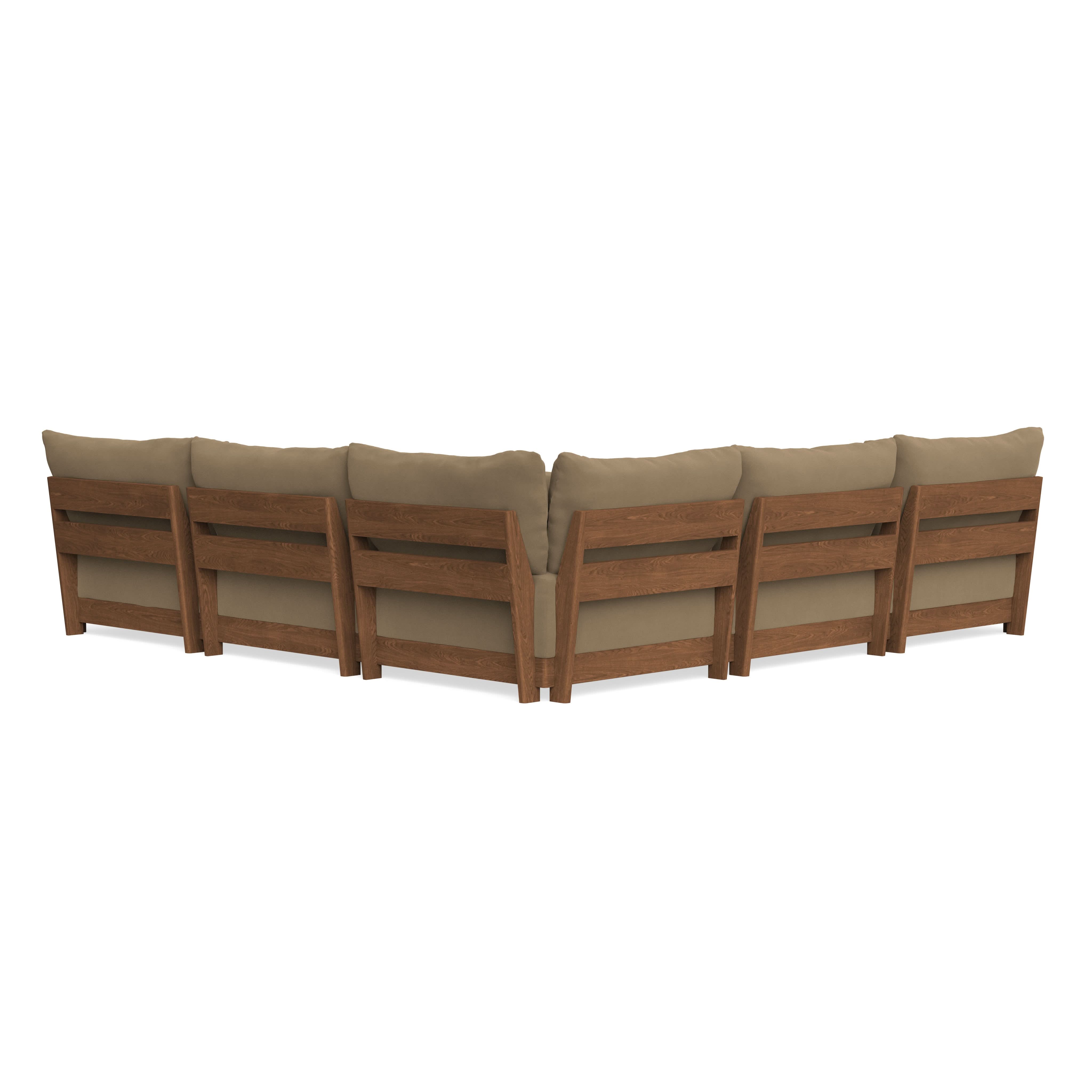 Every seat block is alike and can be used in the middle, on the end, or as a corner piece in your sofa. Each solid wood arm/back panel is identical and can be attached to any three sides of a seat block. Ottomans are adaptable too, as they can stand alone or serve as an extension to your sofa by being attached to any seat block at its base. Note that arm/back panels cannot be attached to an ottoman base.