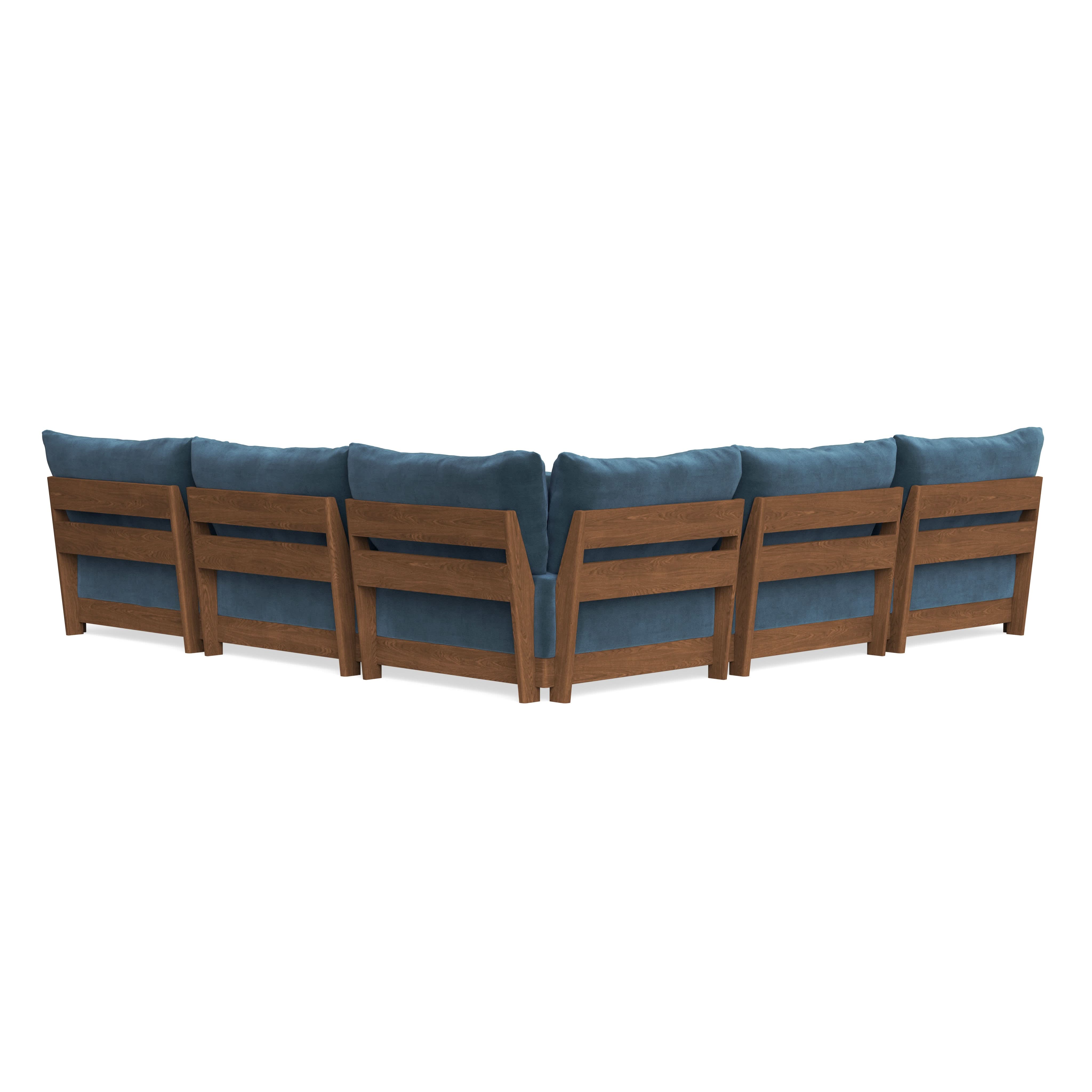 Every seat block is alike and can be used in the middle, on the end, or as a corner piece in your sofa. Each solid wood arm/back panel is identical and can be attached to any three sides of a seat block. Ottomans are adaptable too, as they can stand alone or serve as an extension to your sofa by being attached to any seat block at its base. Note that arm/back panels cannot be attached to an ottoman base.