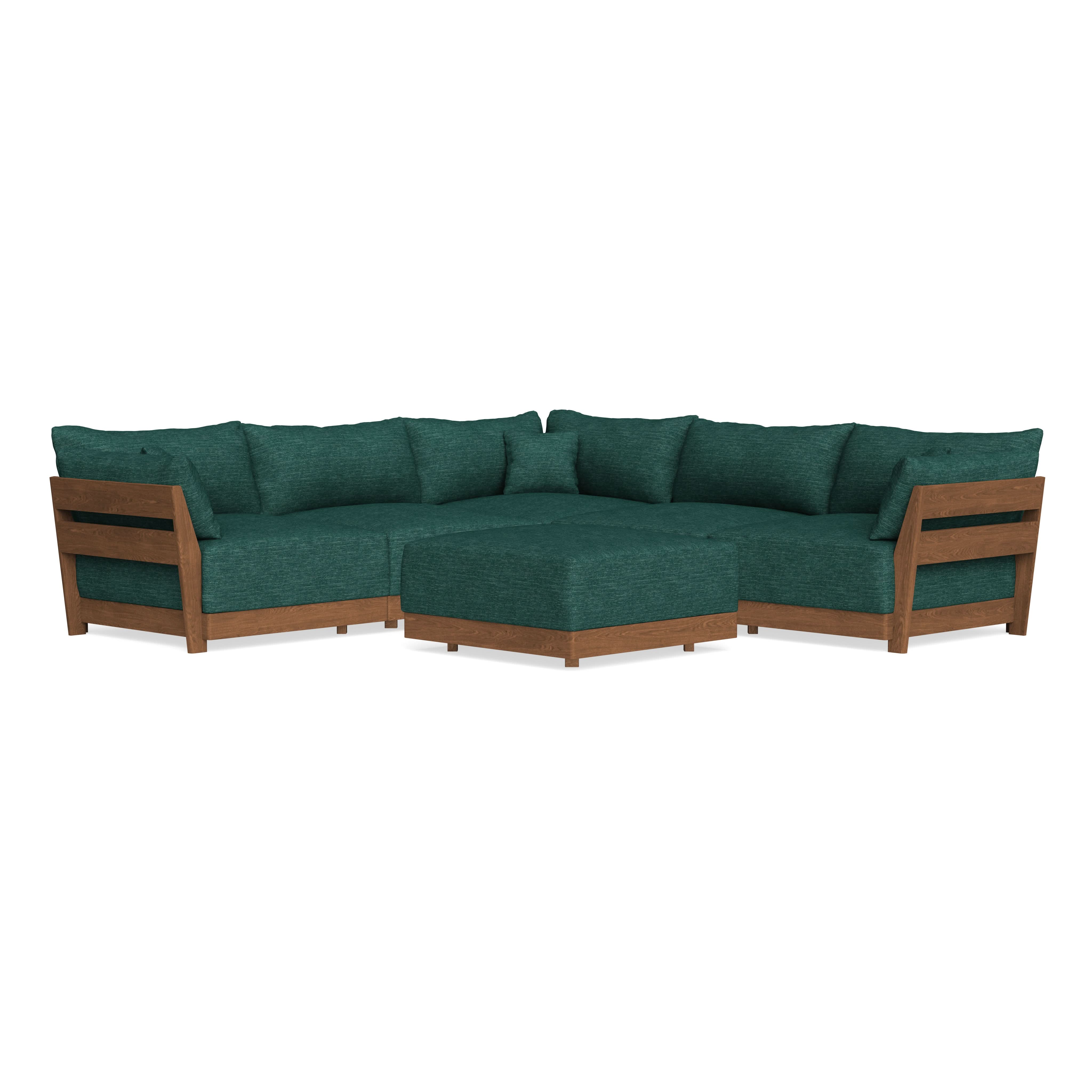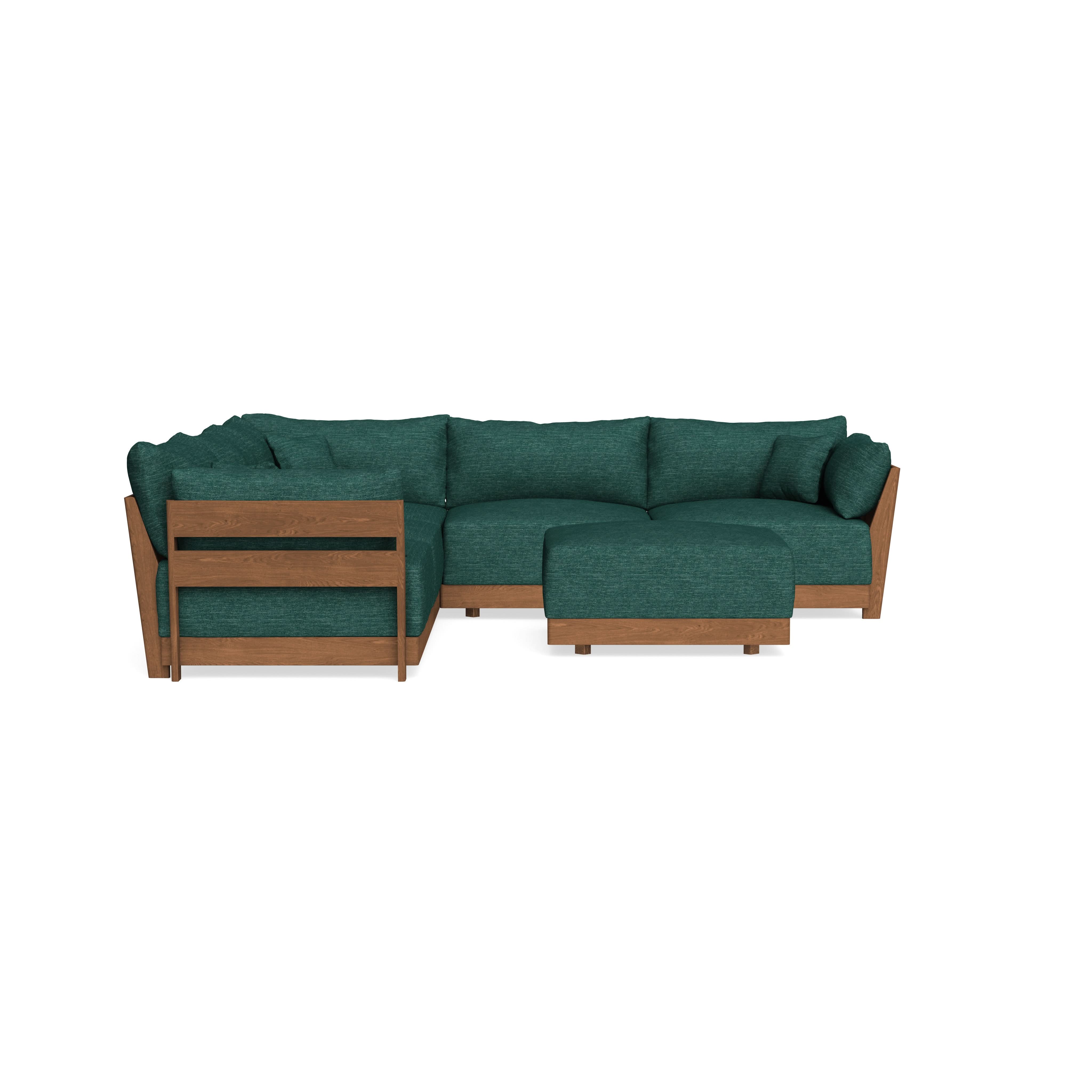 Modular Bondi Espresso 5-Seater Corner Sectional + Ottoman in Forest Green | Memory Foam Blend