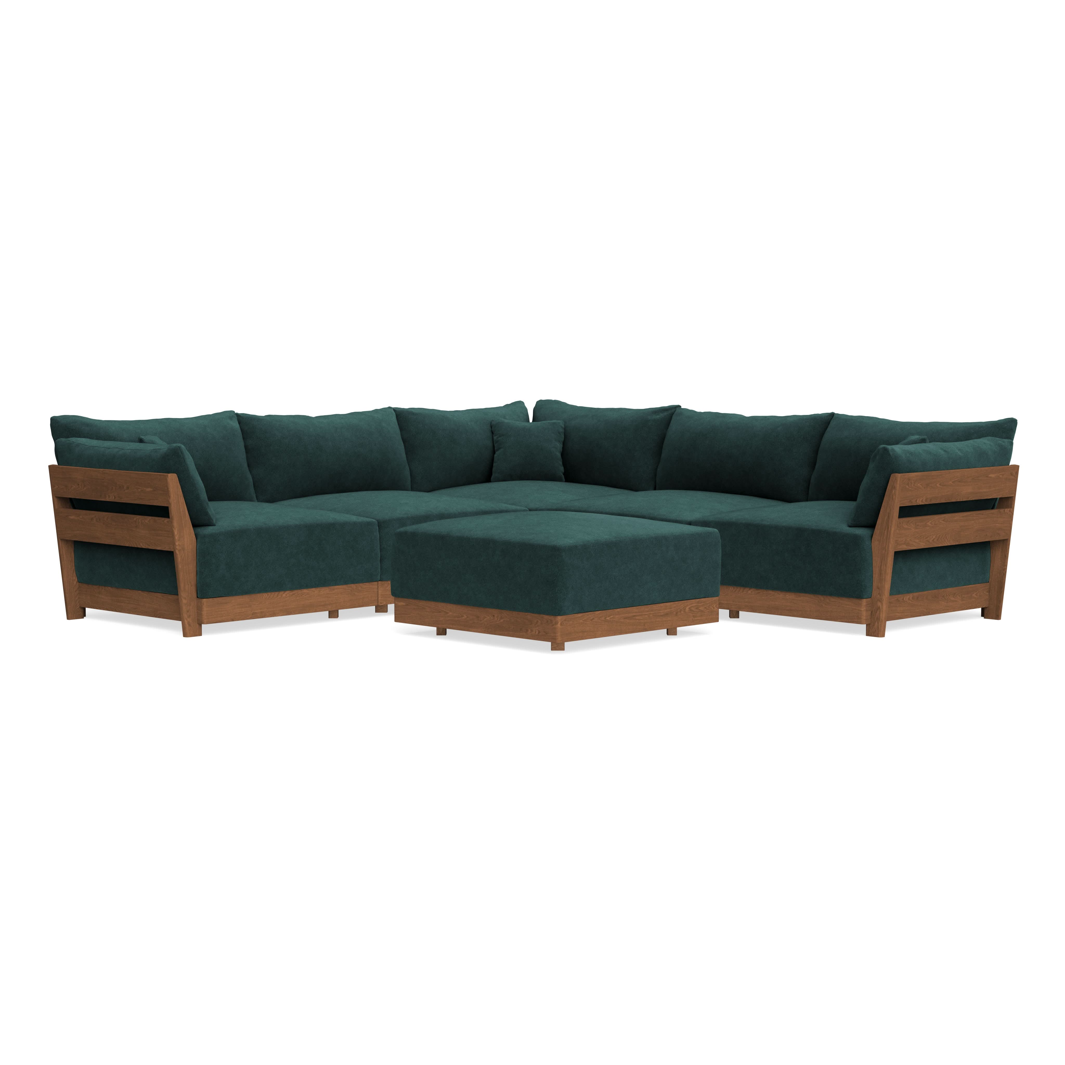 Modular Bondi Espresso 5-Seater Corner Sectional + Ottoman in Harbor Blue | Classic Blend