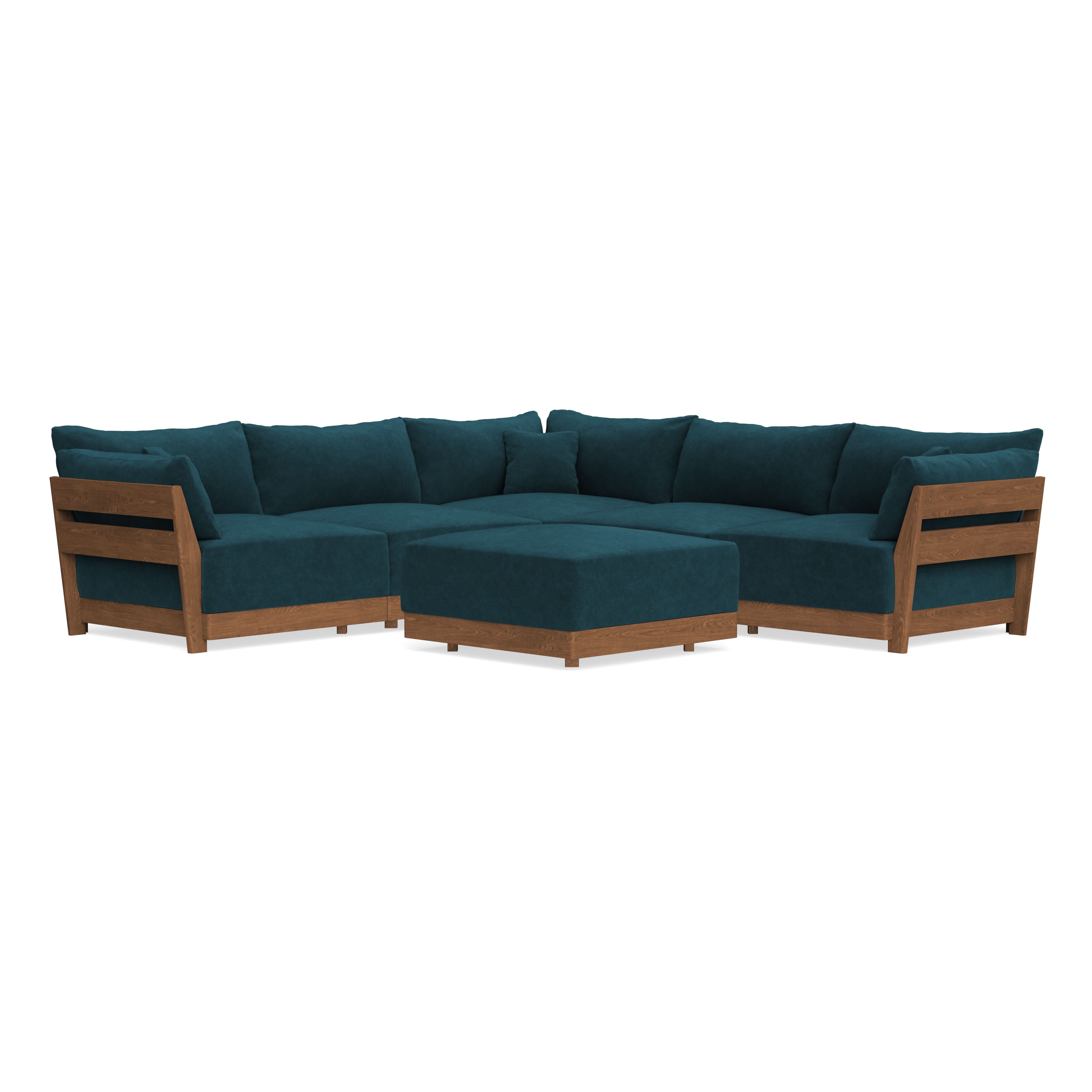 Modular Bondi Espresso 5-Seater Corner Sectional + Ottoman in Indigo | Classic Blend