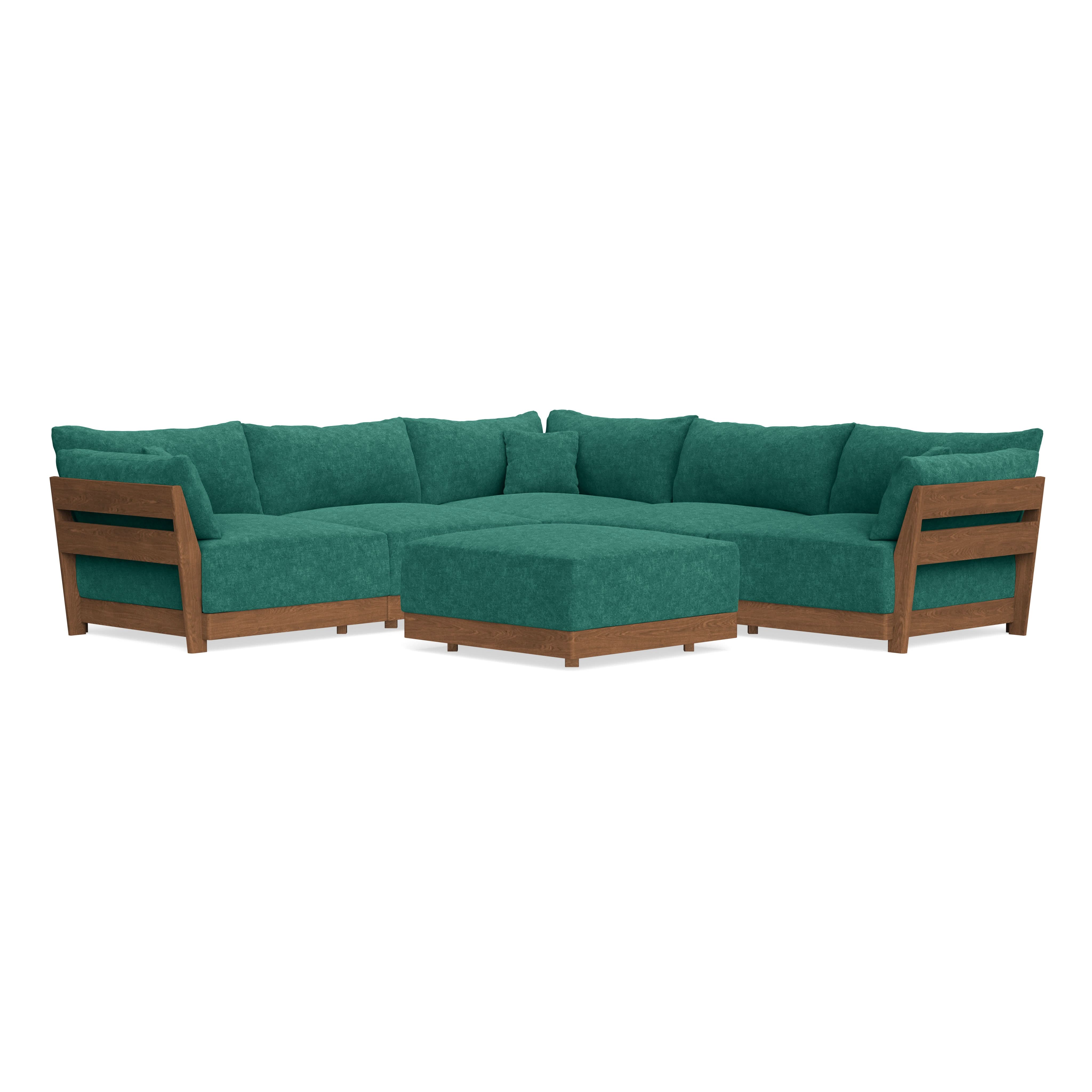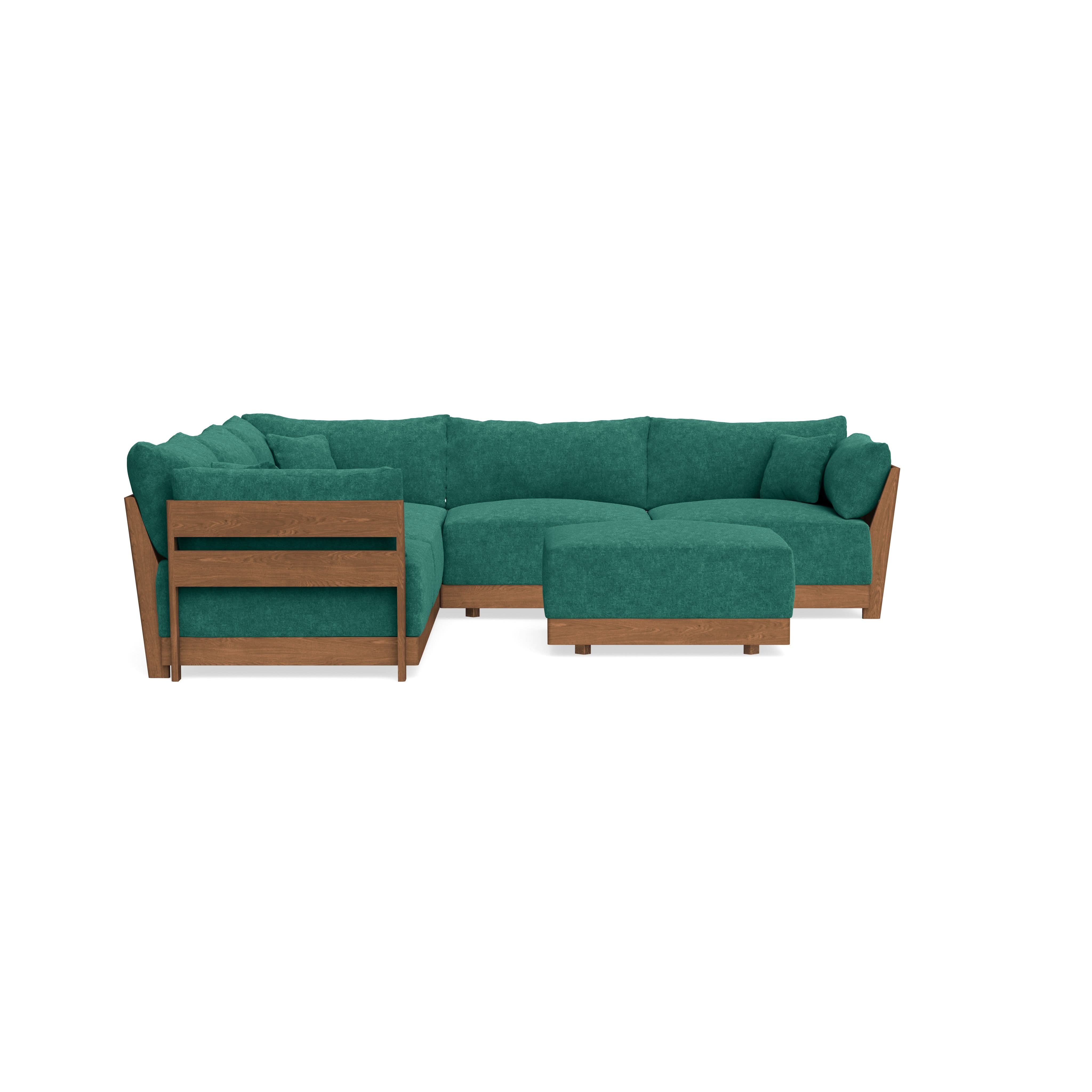 Modular Bondi Espresso 5-Seater Corner Sectional + Ottoman in Jade Green | Classic Blend