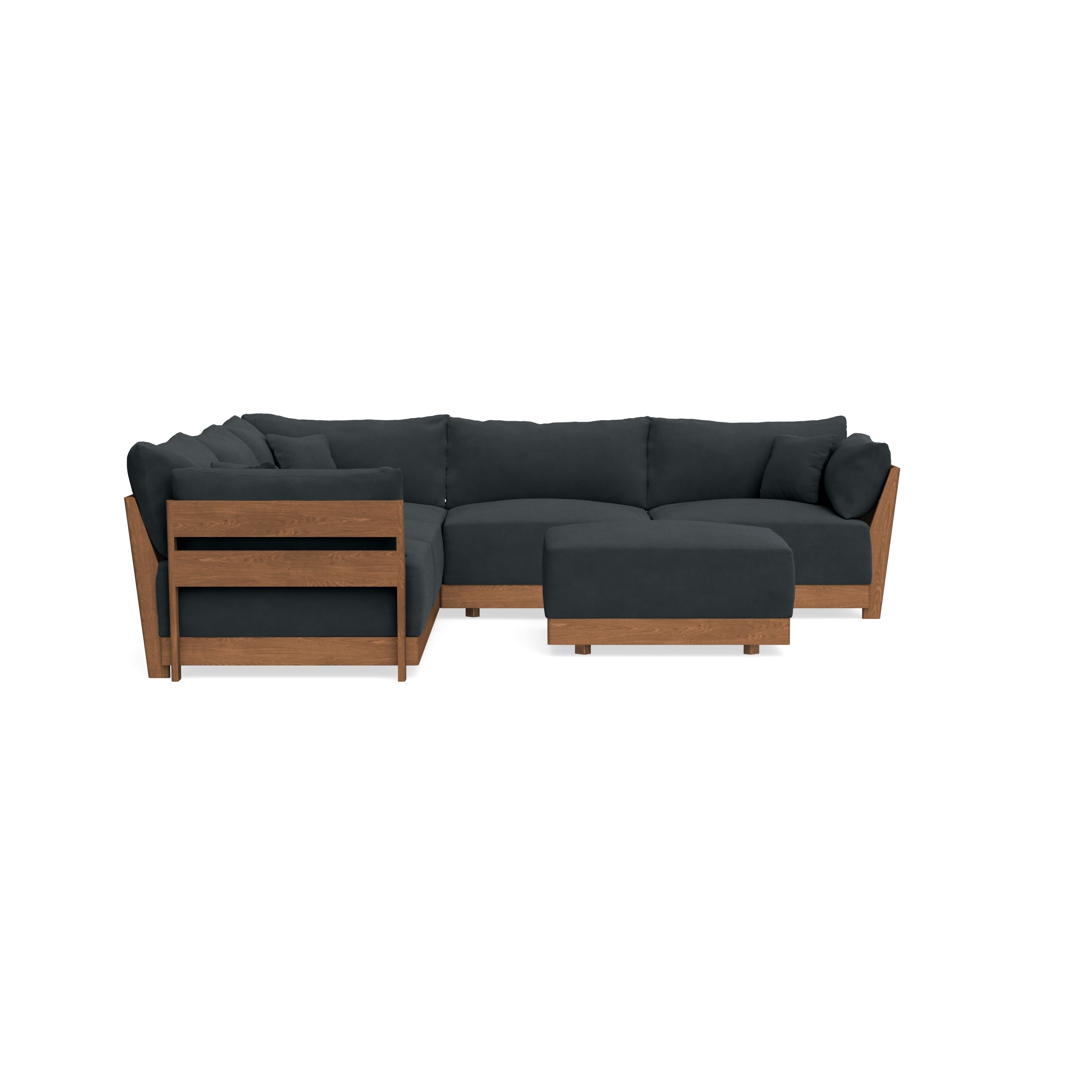 Modular Bondi Espresso 5-Seater Corner Sectional + Ottoman in Obsidian | Memory Foam Blend