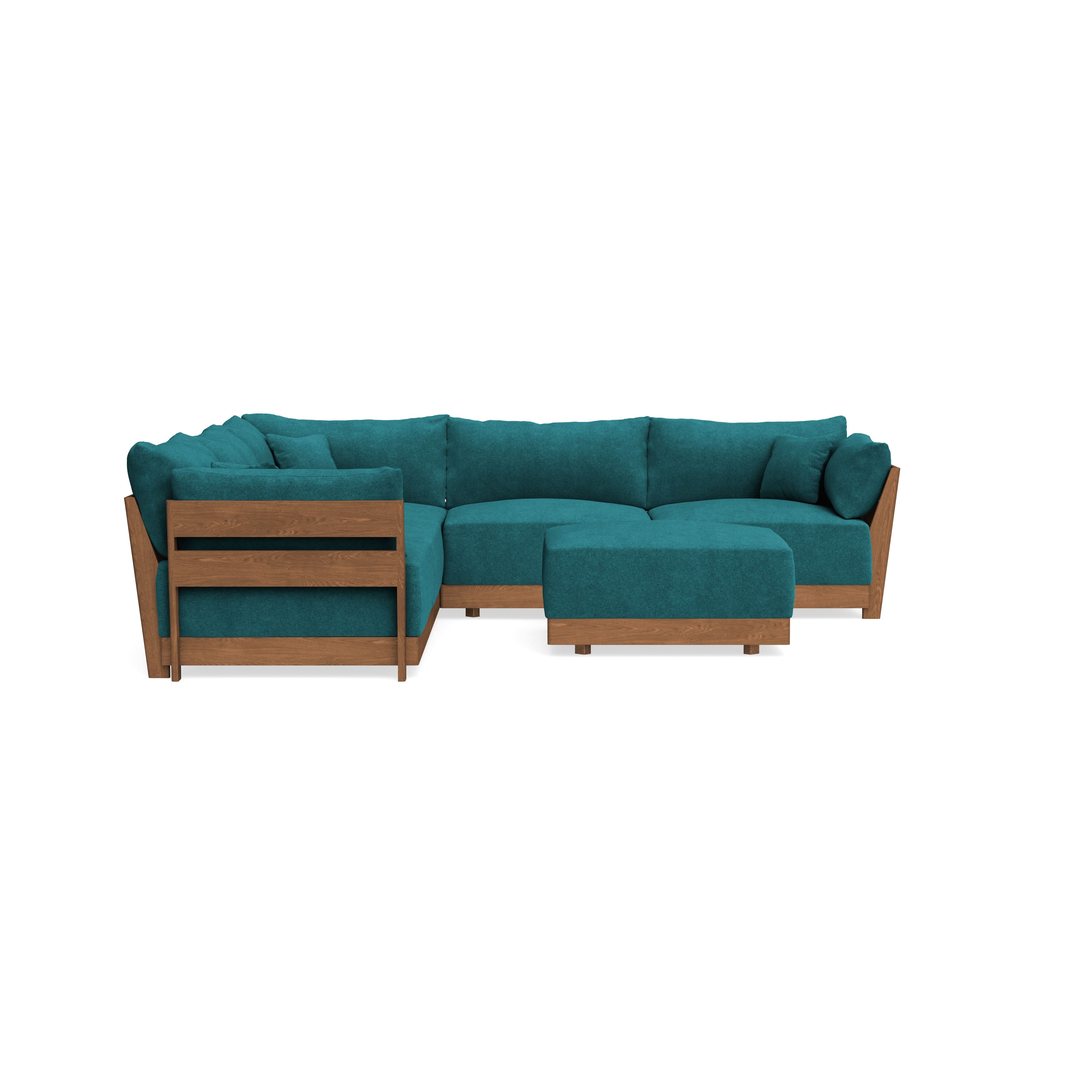 Modular Bondi Espresso 5-Seater Corner Sectional + Ottoman in Ocean | Classic Blend
