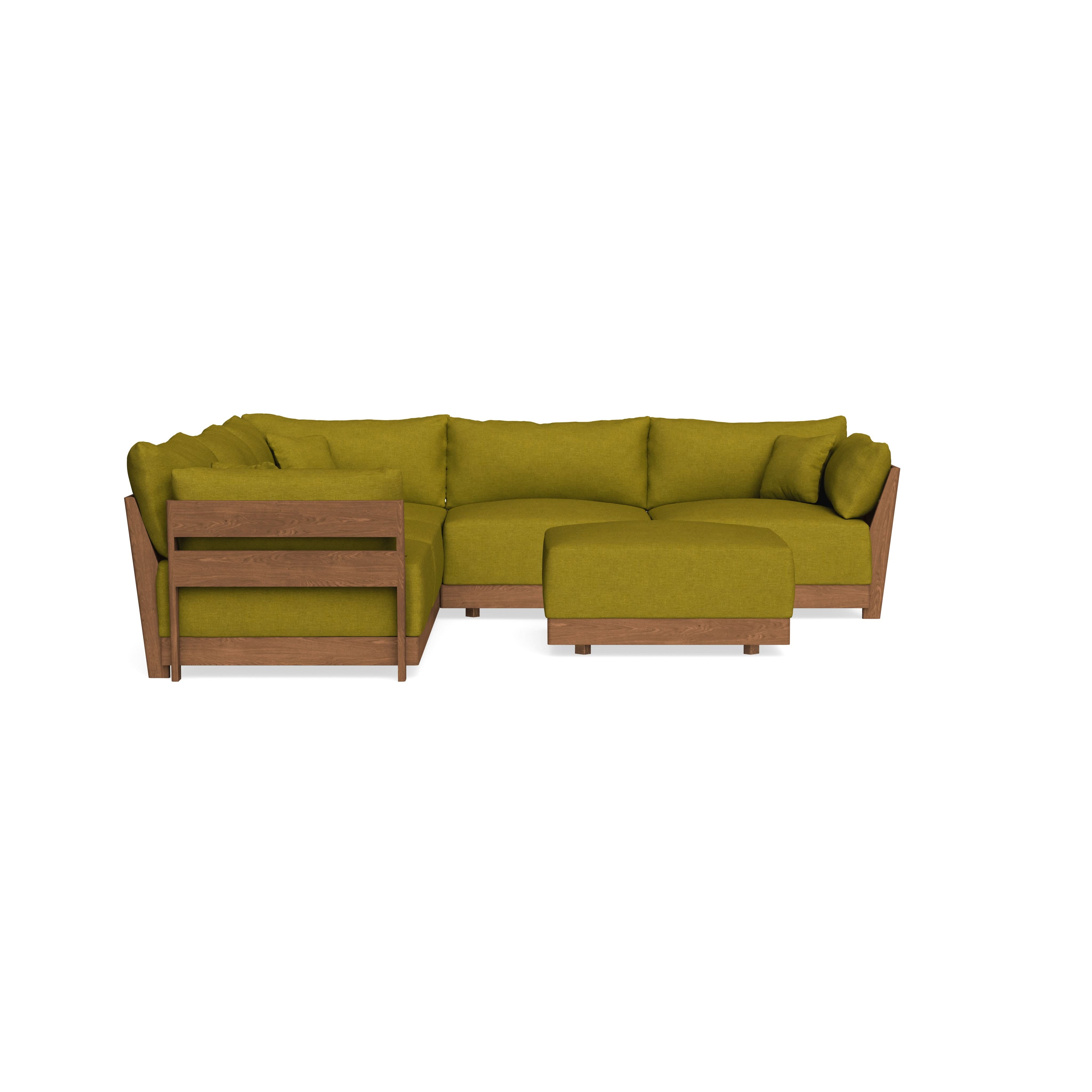 Modular Bondi Espresso 5-Seater Corner Sectional + Ottoman in Olive Green | Memory Foam Blend