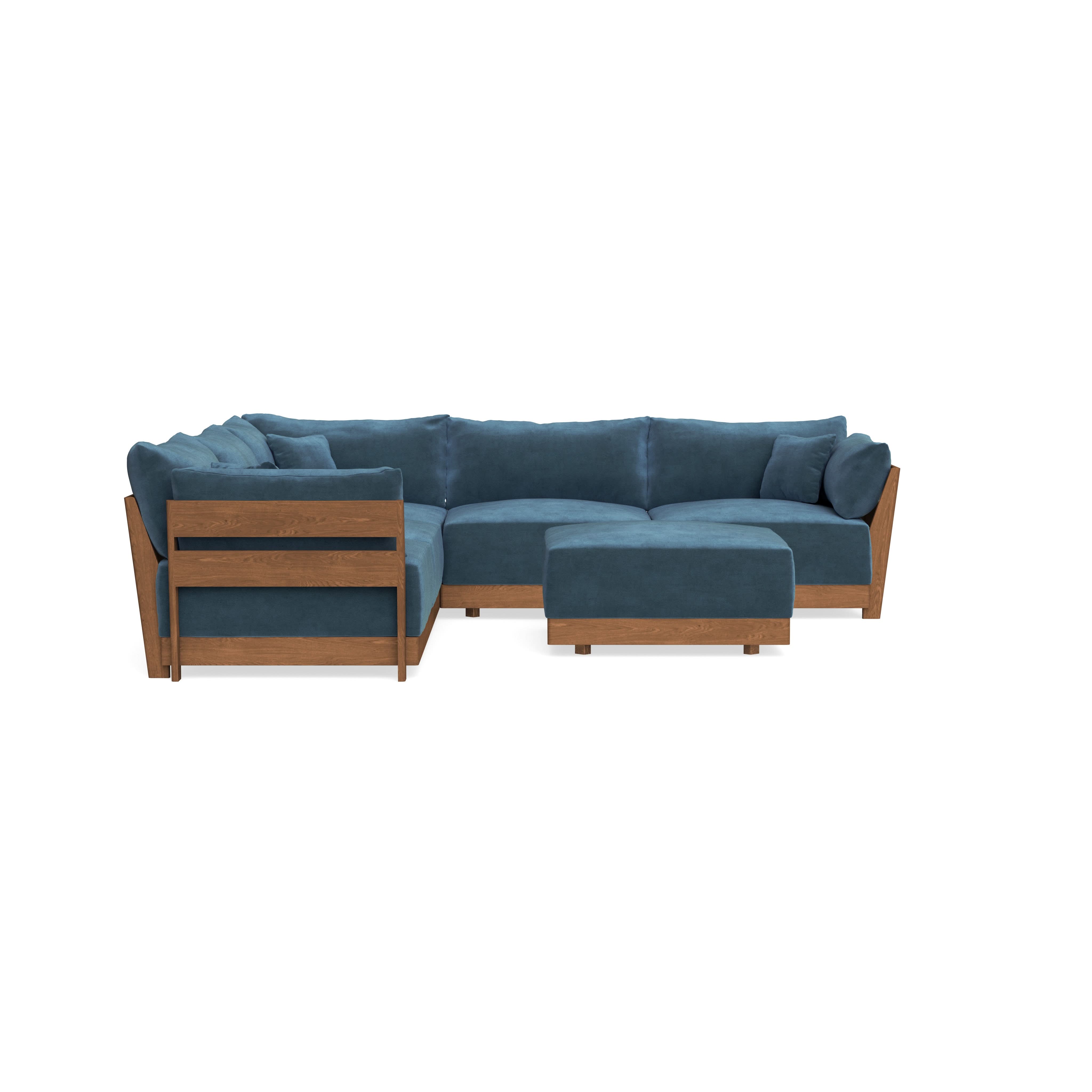 Modular Bondi Espresso 5-Seater Corner Sectional + Ottoman in Oxford Blue | Memory Foam Blend