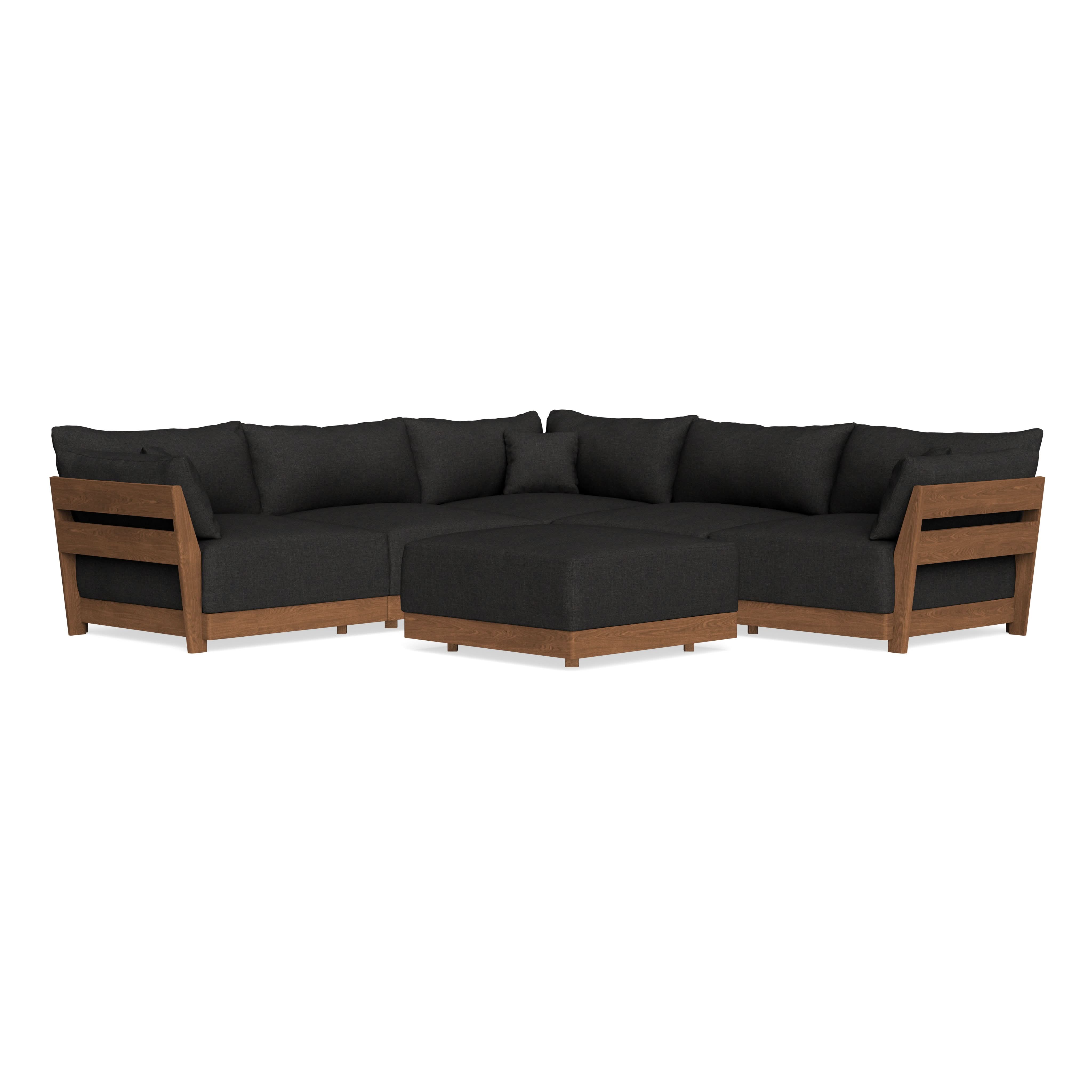 Every seat block is alike and can be used in the middle, on the end, or as a corner piece in your sofa. Each solid wood arm/back panel is identical and can be attached to any three sides of a seat block. Ottomans are adaptable too, as they can stand alone or serve as an extension to your sofa by being attached to any seat block at its base. Note that arm/back panels cannot be attached to an ottoman base.