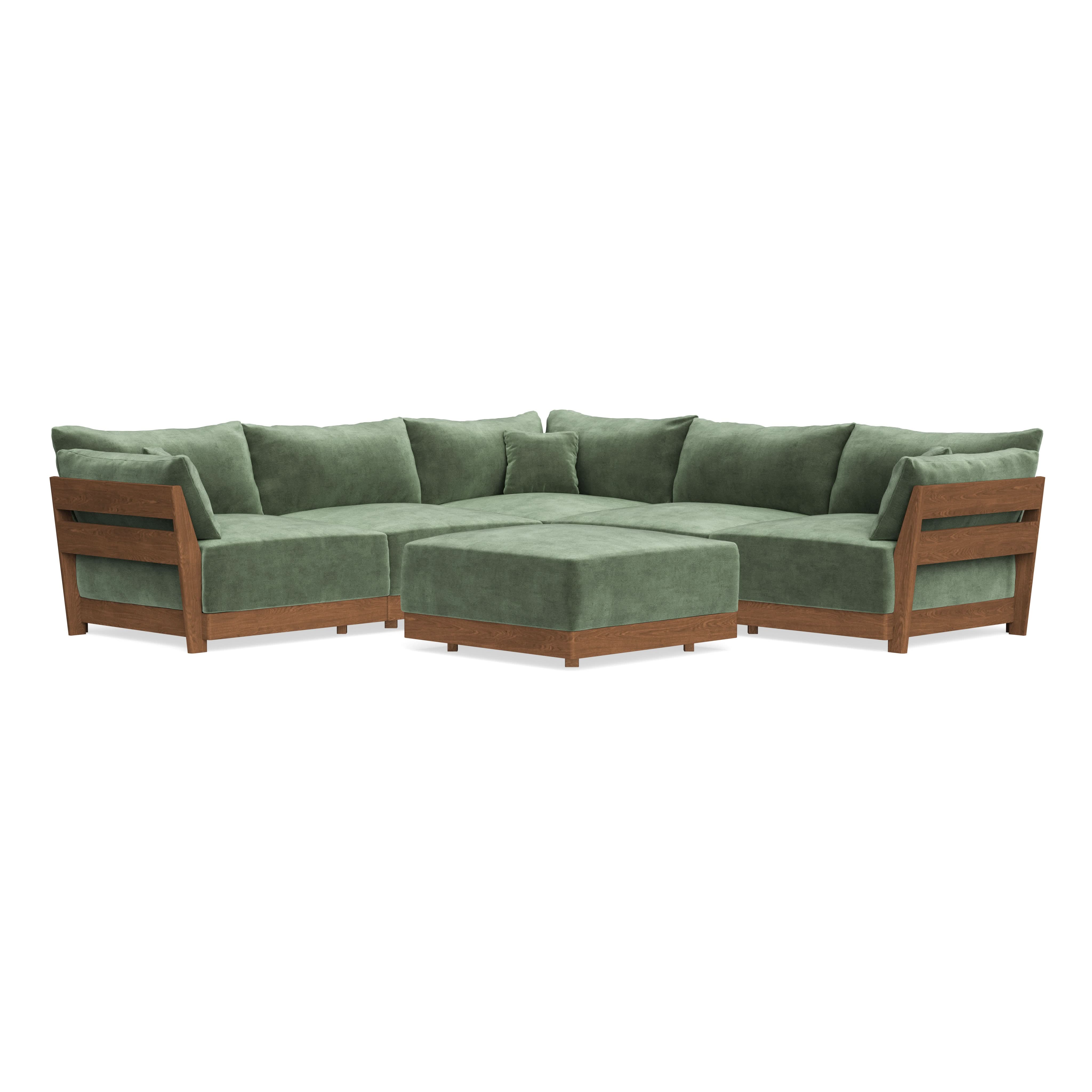 Modular Bondi Espresso 5-Seater Corner Sectional + Ottoman in Rosemary | Memory Foam Blend