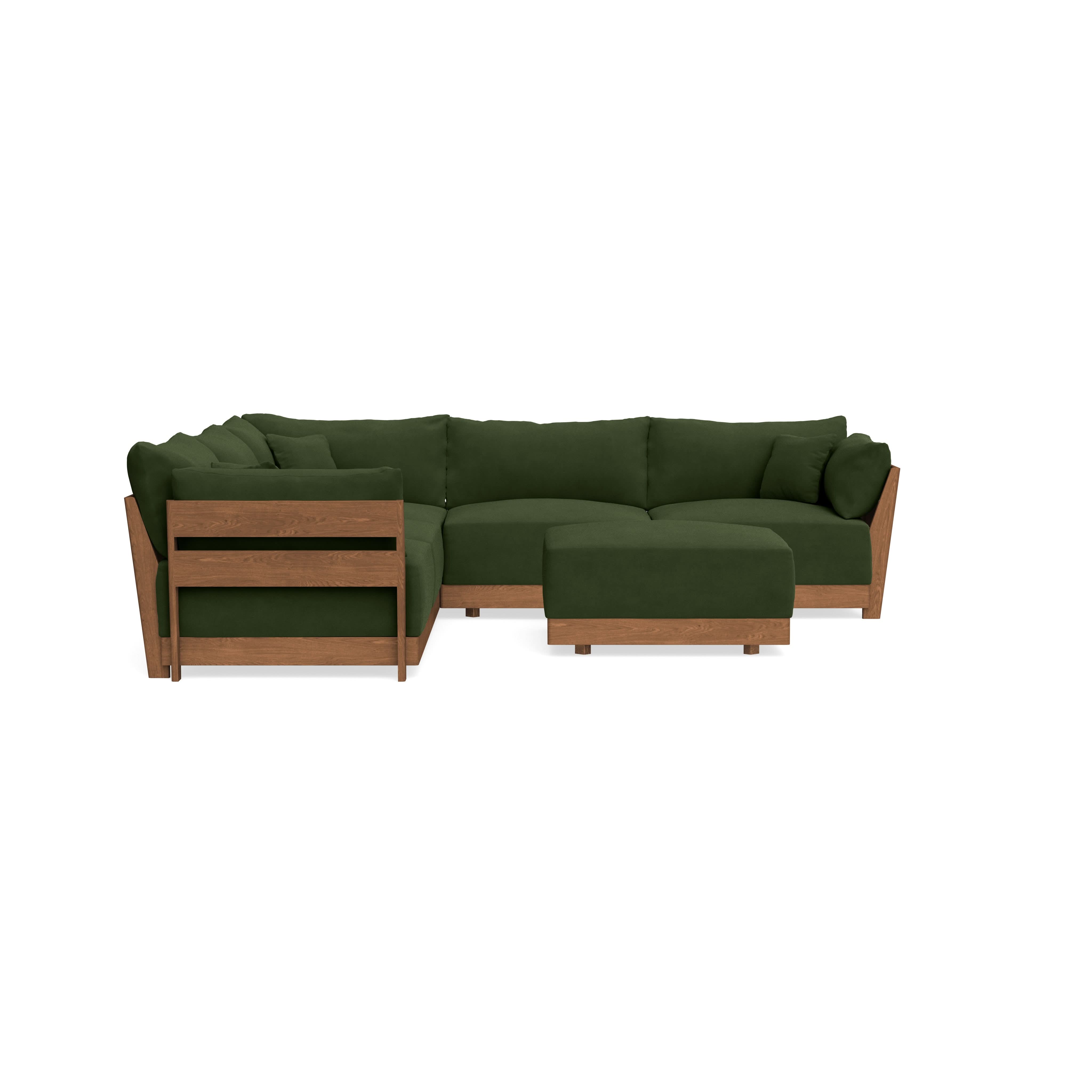Modular Bondi Espresso 5-Seater Corner Sectional + Ottoman in Tuscan Green | Classic Blend