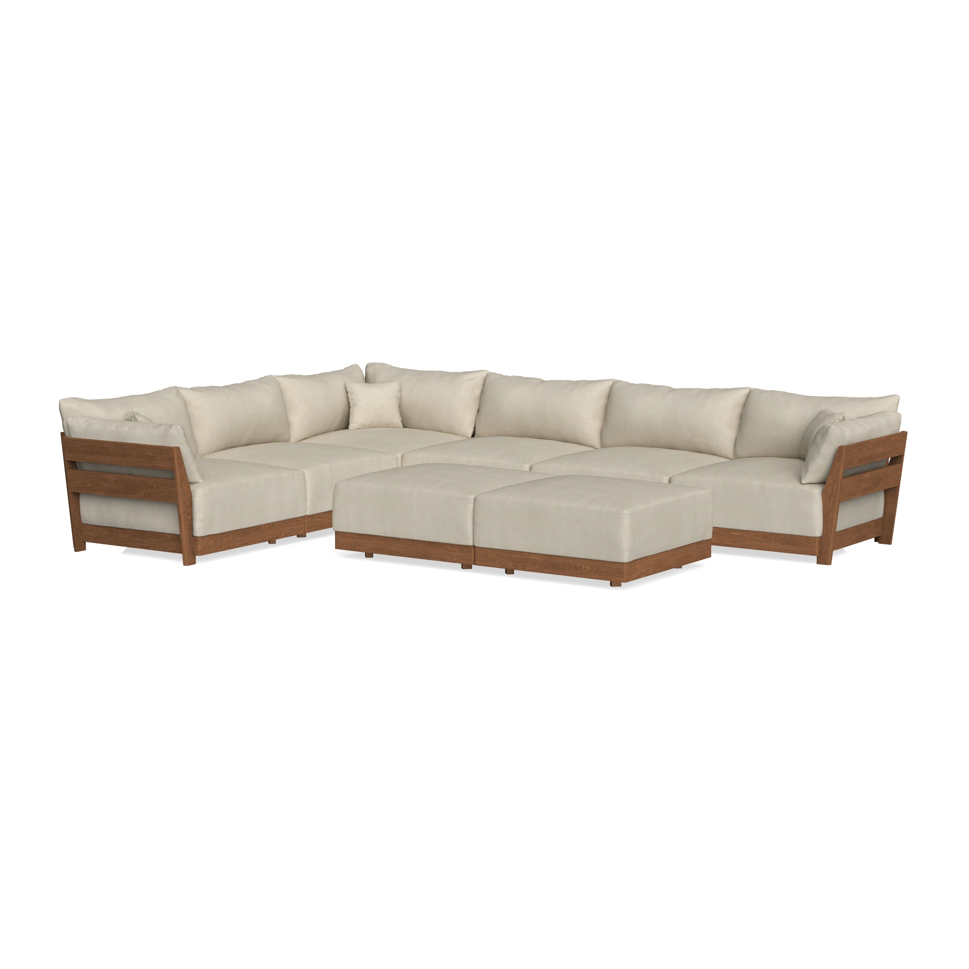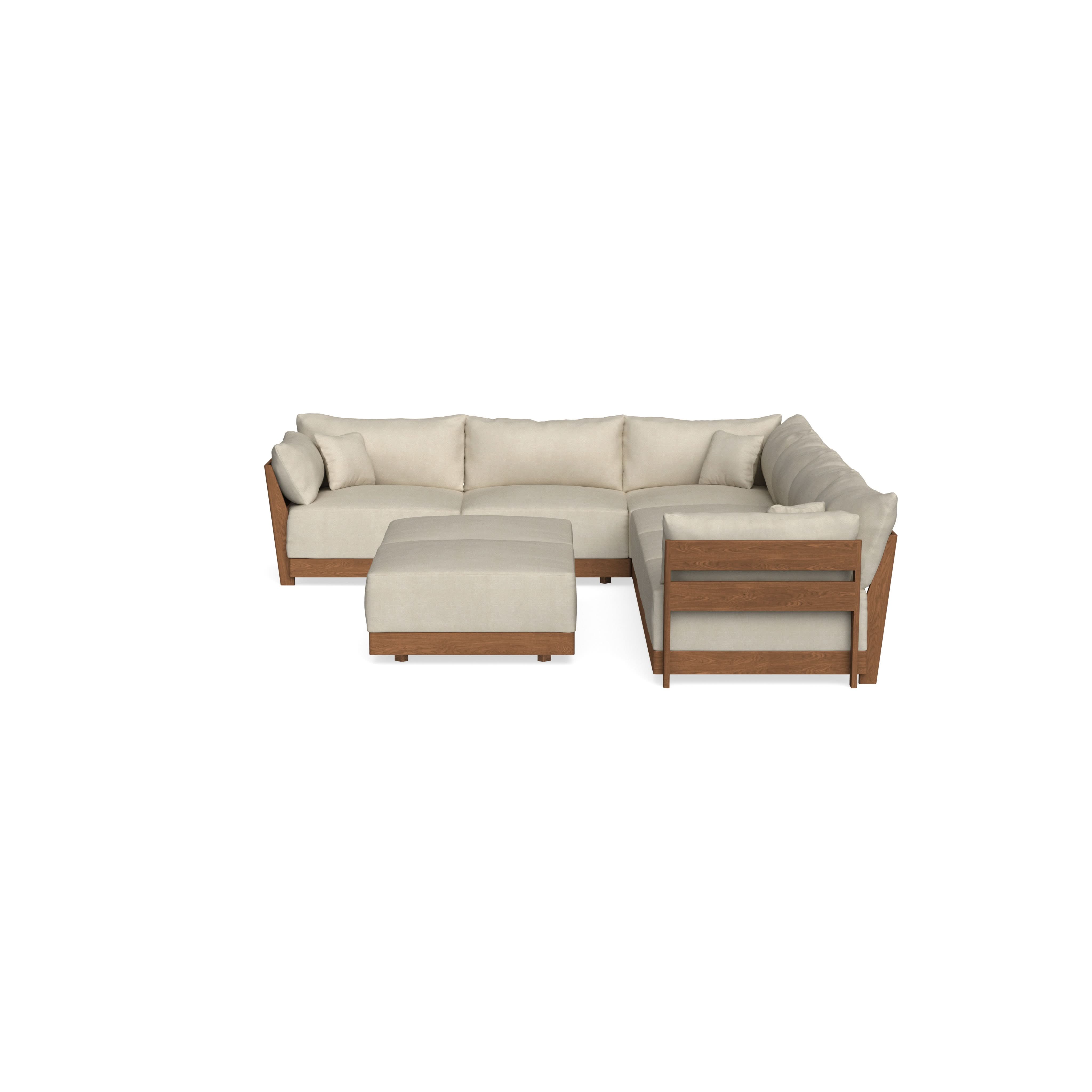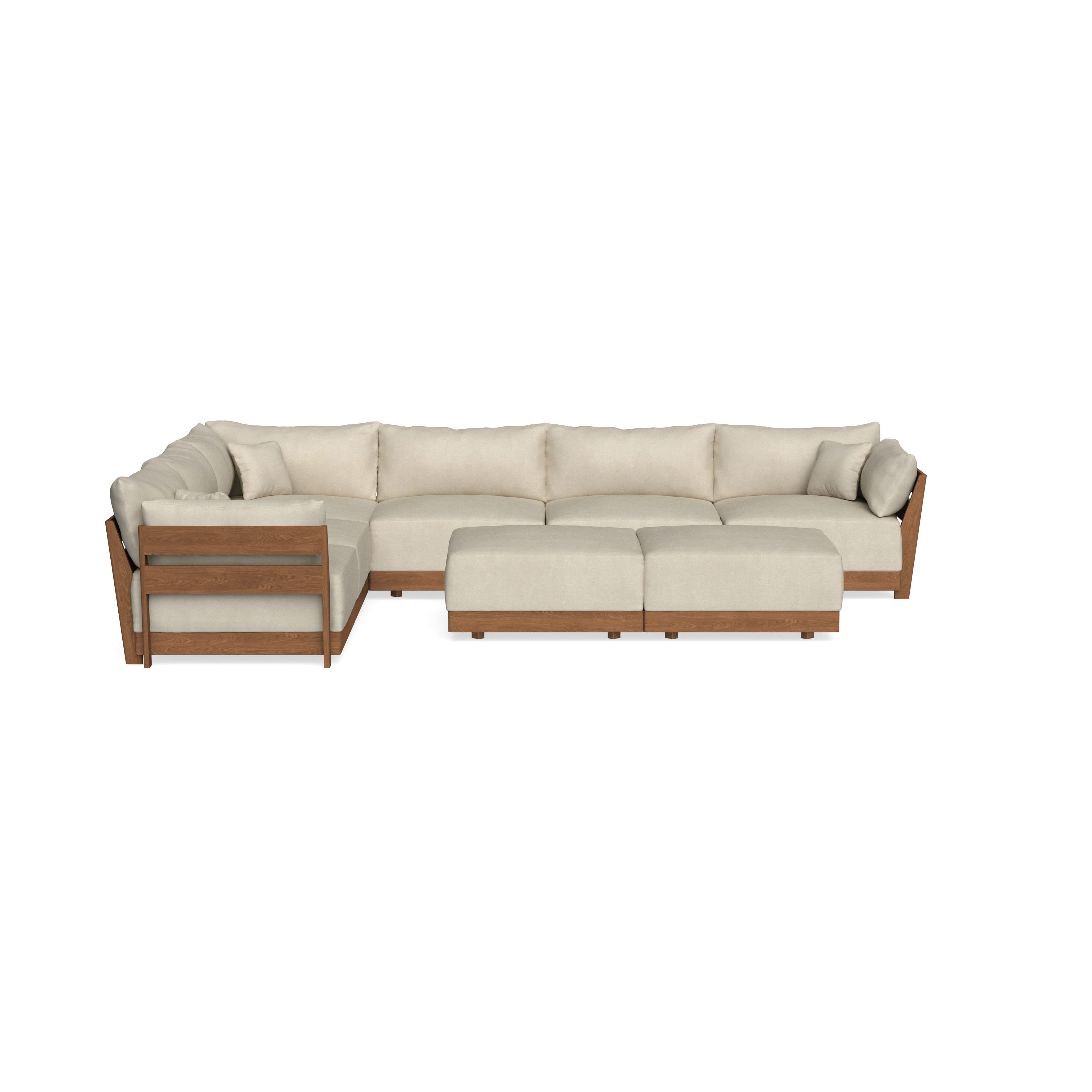 Modular Bondi Espresso 6-Seater Corner Sectional + Bench Ottoman in Almond | Memory Foam Blend