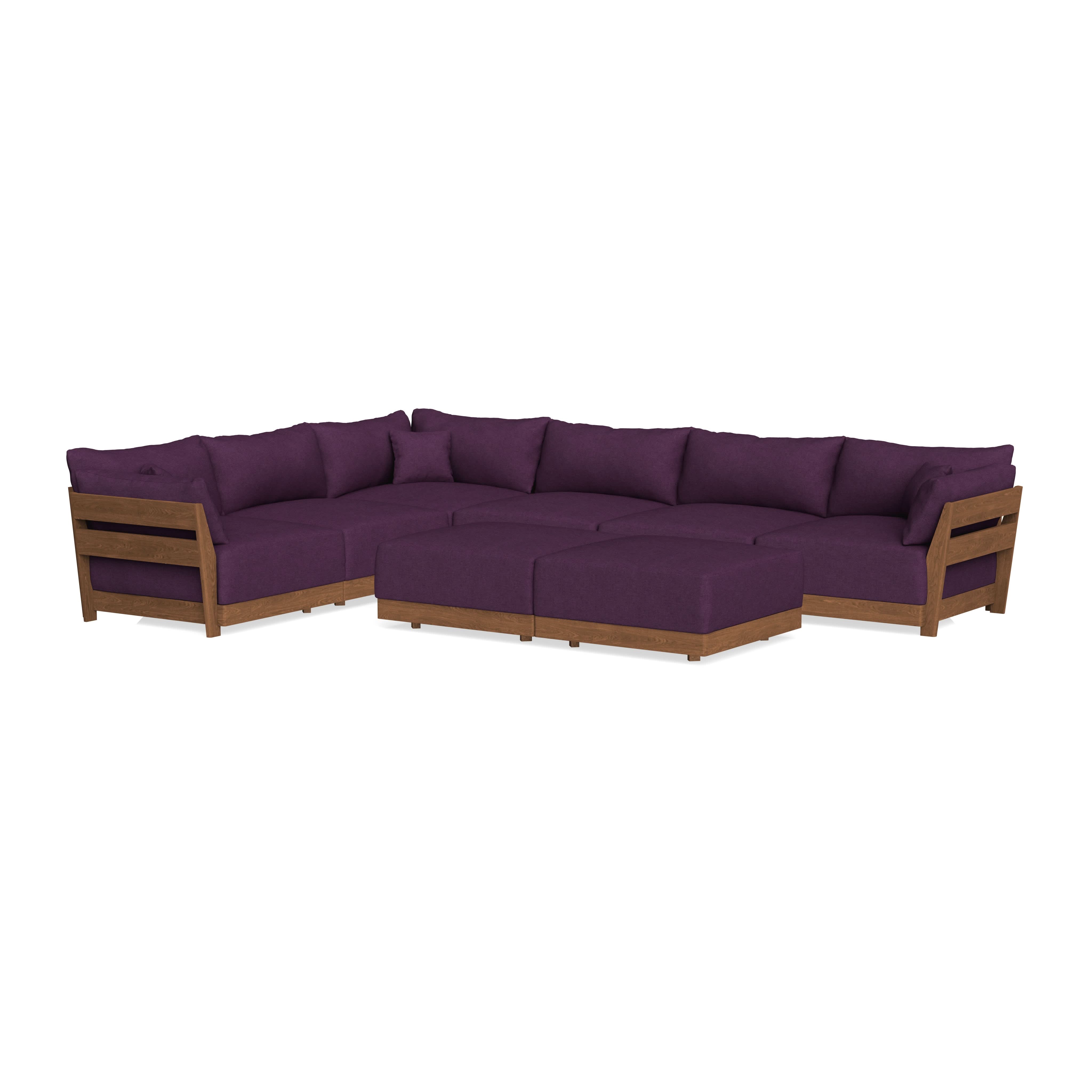 Modular Bondi Espresso 6-Seater Corner Sectional + Bench Ottoman in Aubergine | Memory Foam Blend