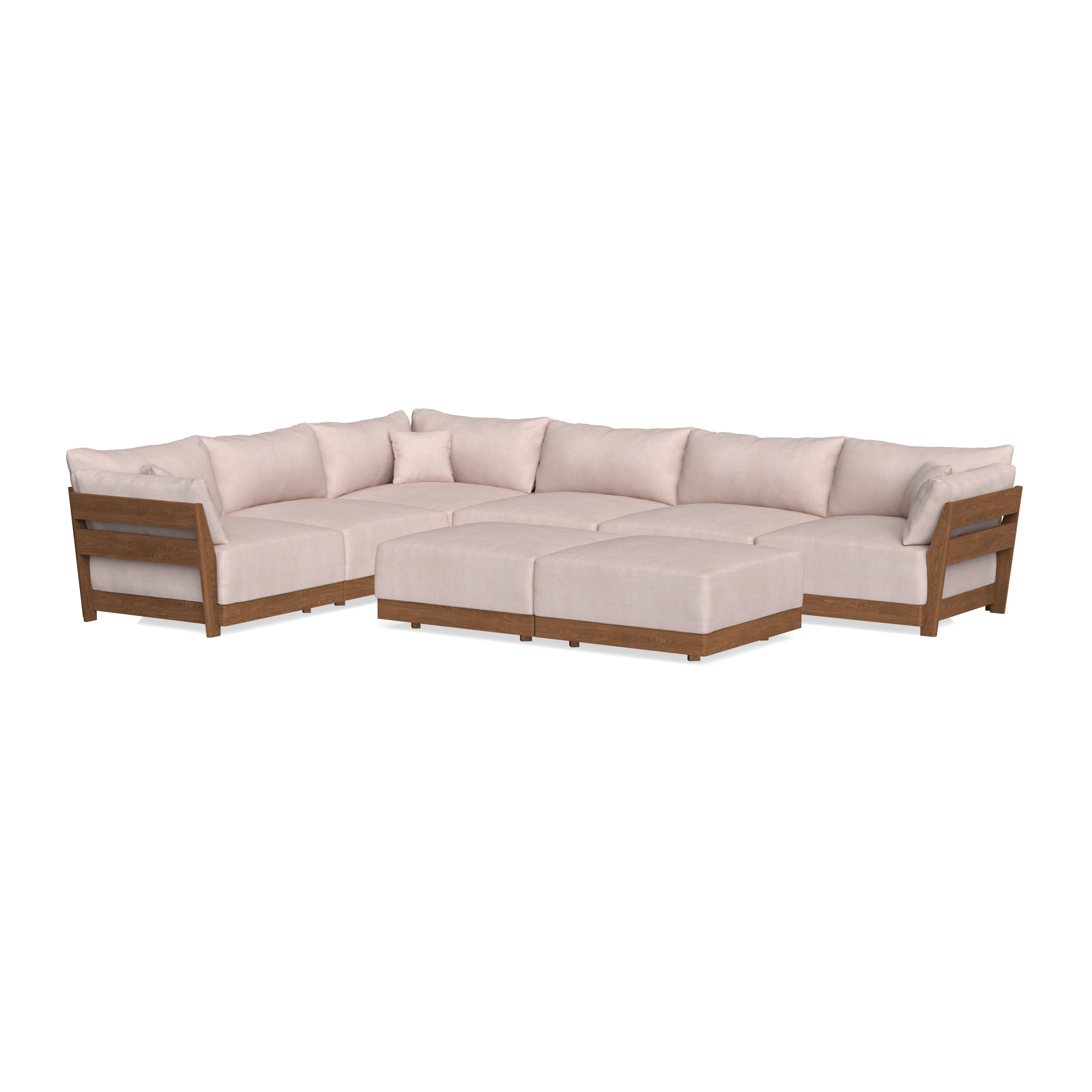 Modular Bondi Espresso 6-Seater Corner Sectional + Bench Ottoman in Blush | Classic Blend