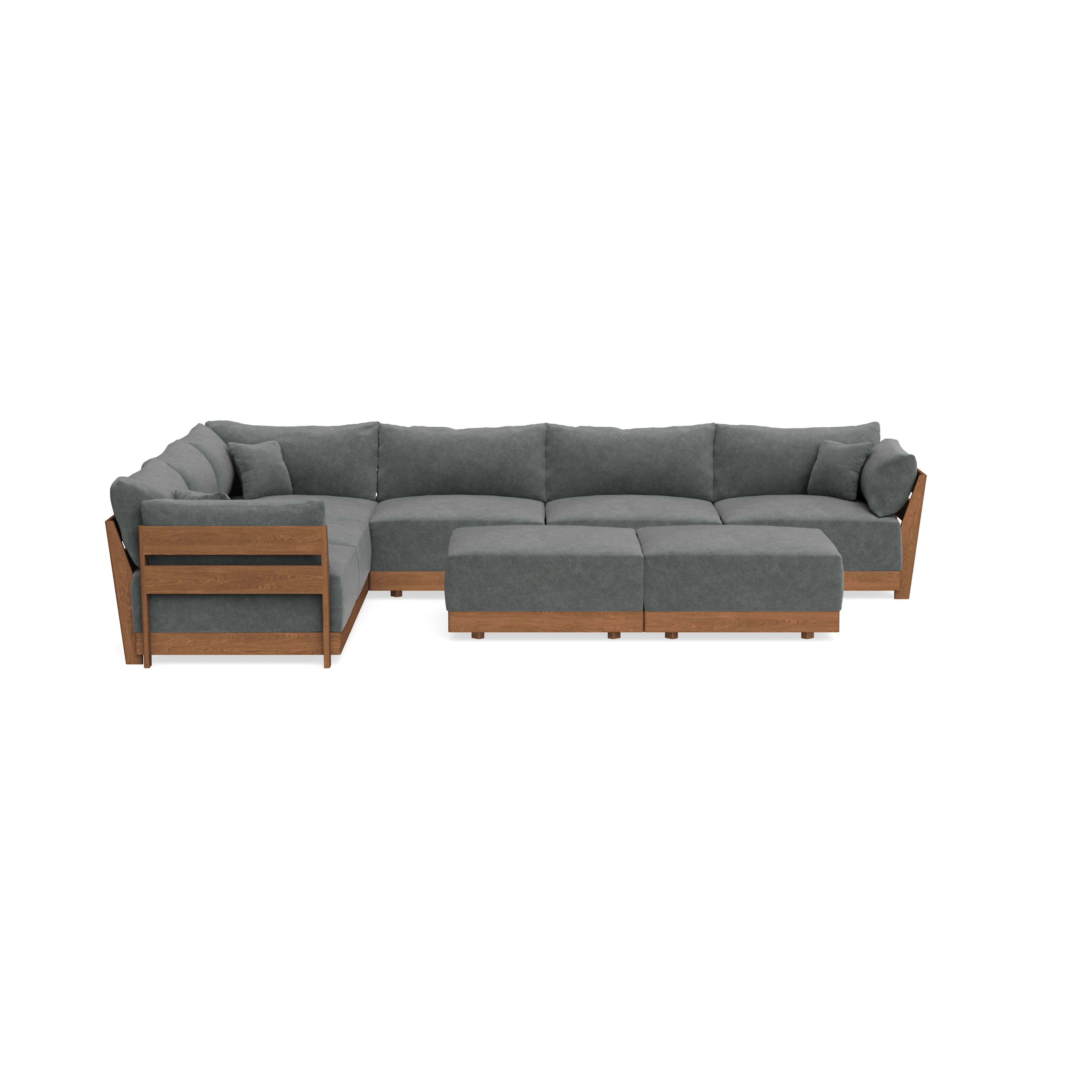 Modular Bondi Espresso 6-Seater Corner Sectional + Bench Ottoman in Chimney Gray | Classic Blend