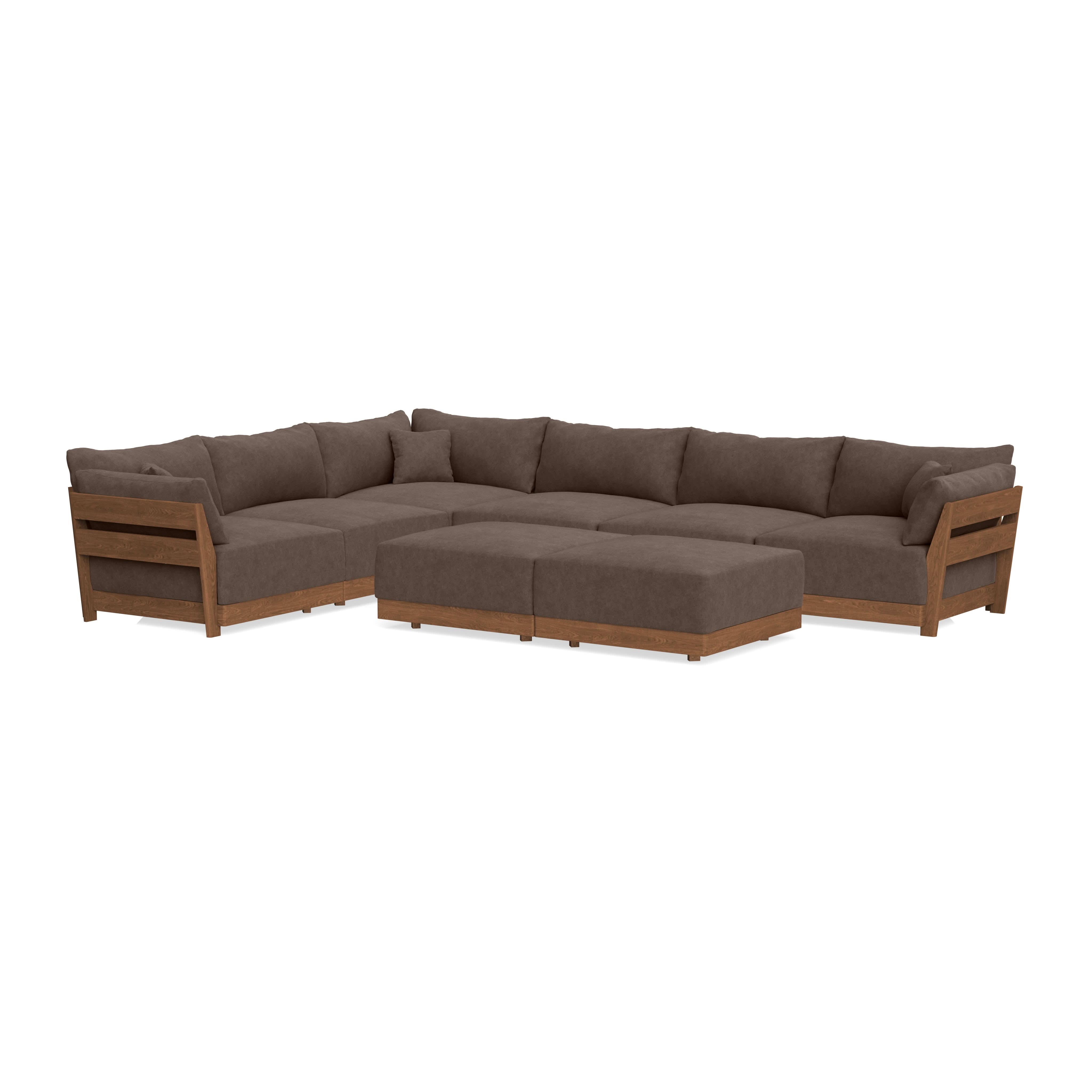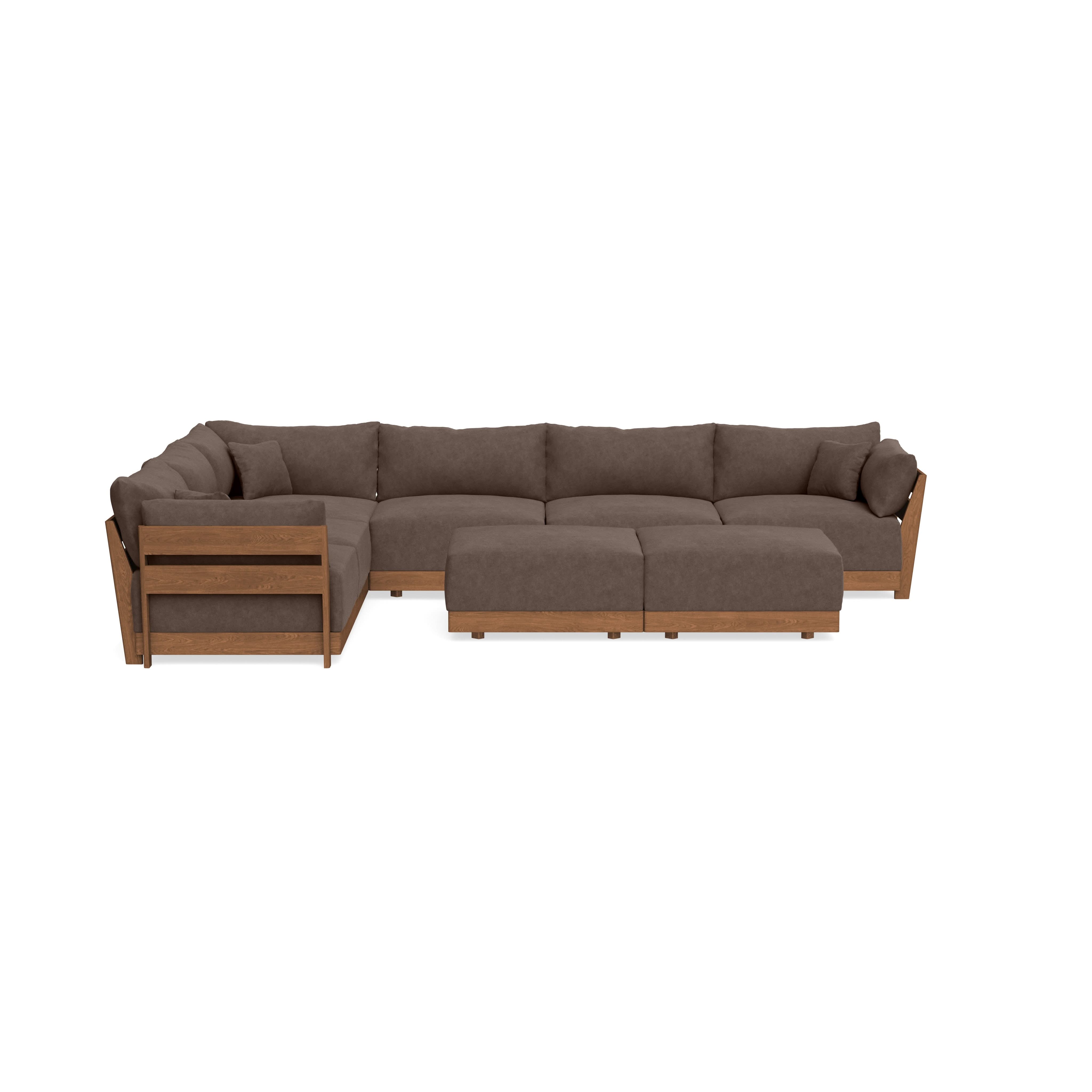Modular Bondi Espresso 6-Seater Corner Sectional + Bench Ottoman in Chocolate | Memory Foam Blend
