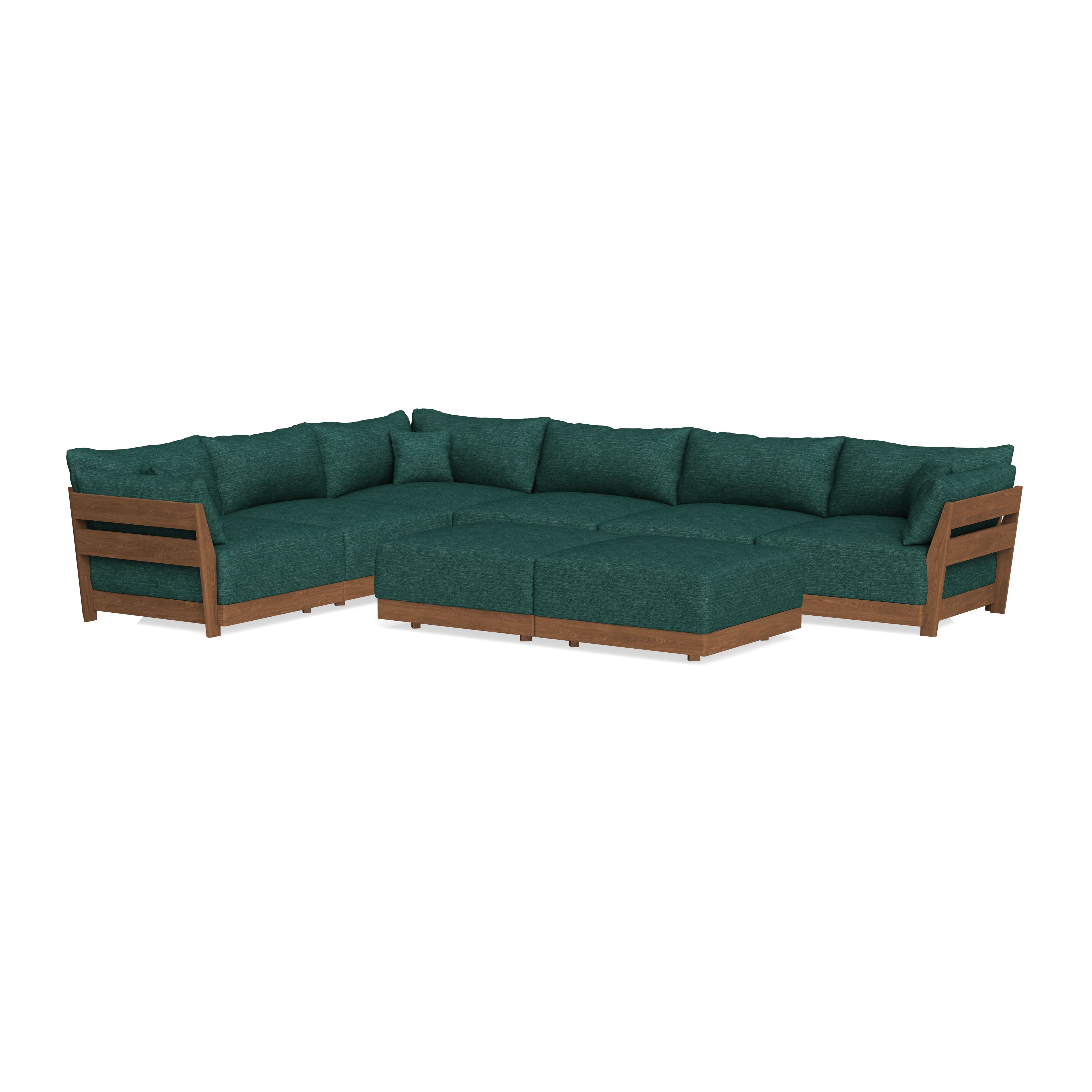 Modular Bondi Espresso 6-Seater Corner Sectional + Bench Ottoman in Forest Green | Memory Foam Blend