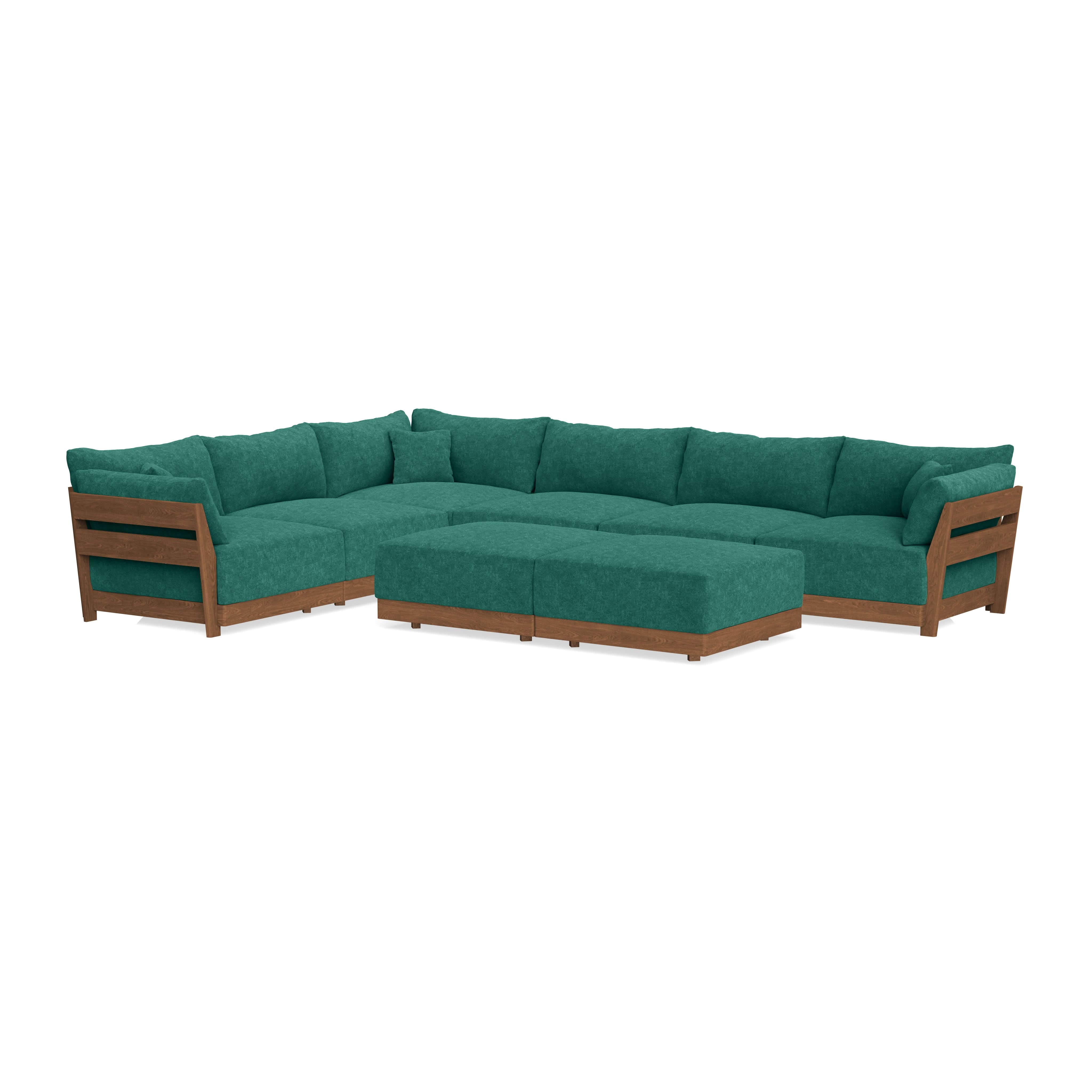 Modular Bondi Espresso 6-Seater Corner Sectional + Bench Ottoman in Jade Green | Classic Blend