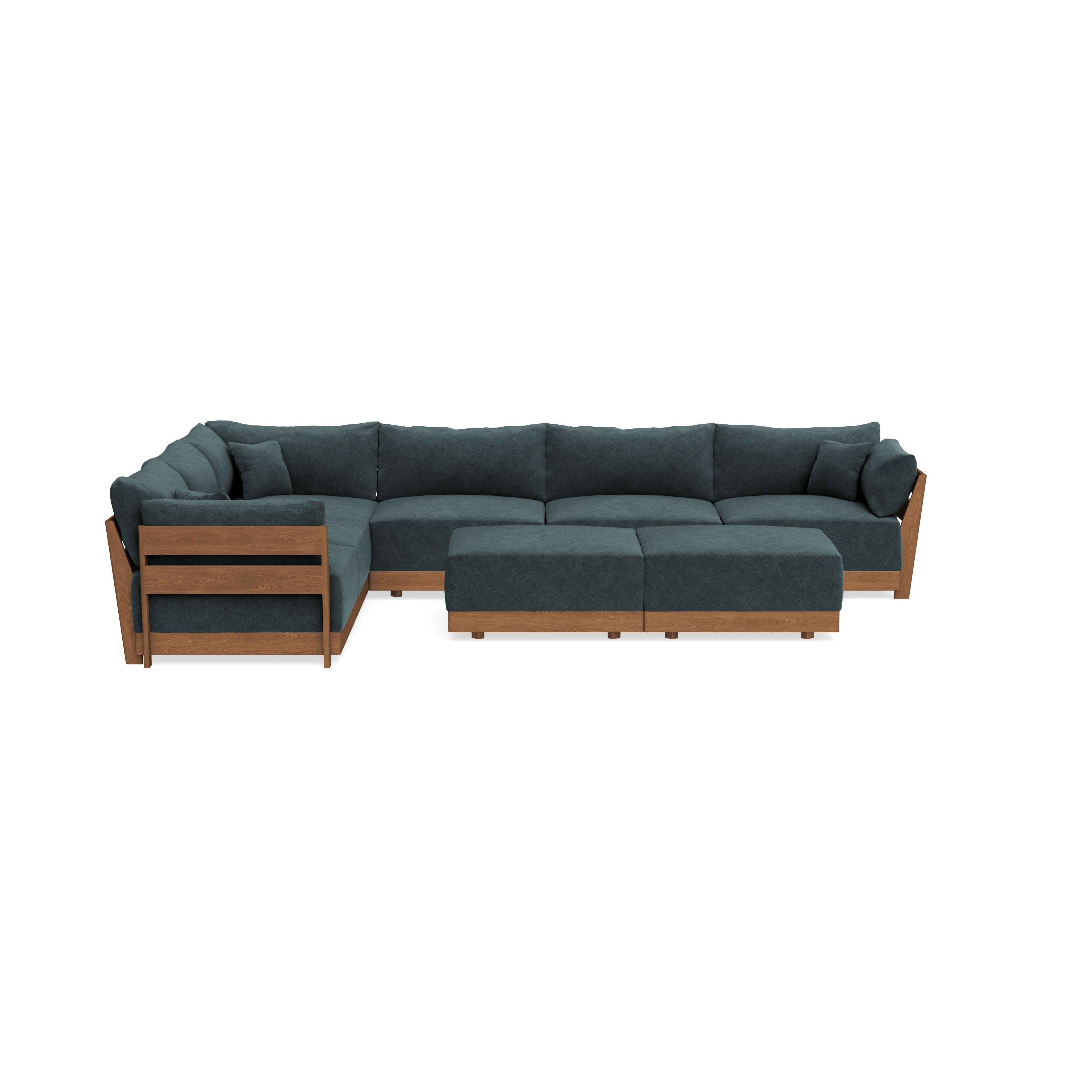 Made to move and adapt with your ever-changing lifestyle. Every patent pending seat block is alike and can be used in the middle, on the end, or as a corner piece in your sofa. Likewise, every slatted solid wood panel is identical and can be used as either an “arm” or a “back”. And the ottomans? Also adaptable! Ottomans can stand alone or serve as an extension to your sofa by connecting to any seat module at its base.