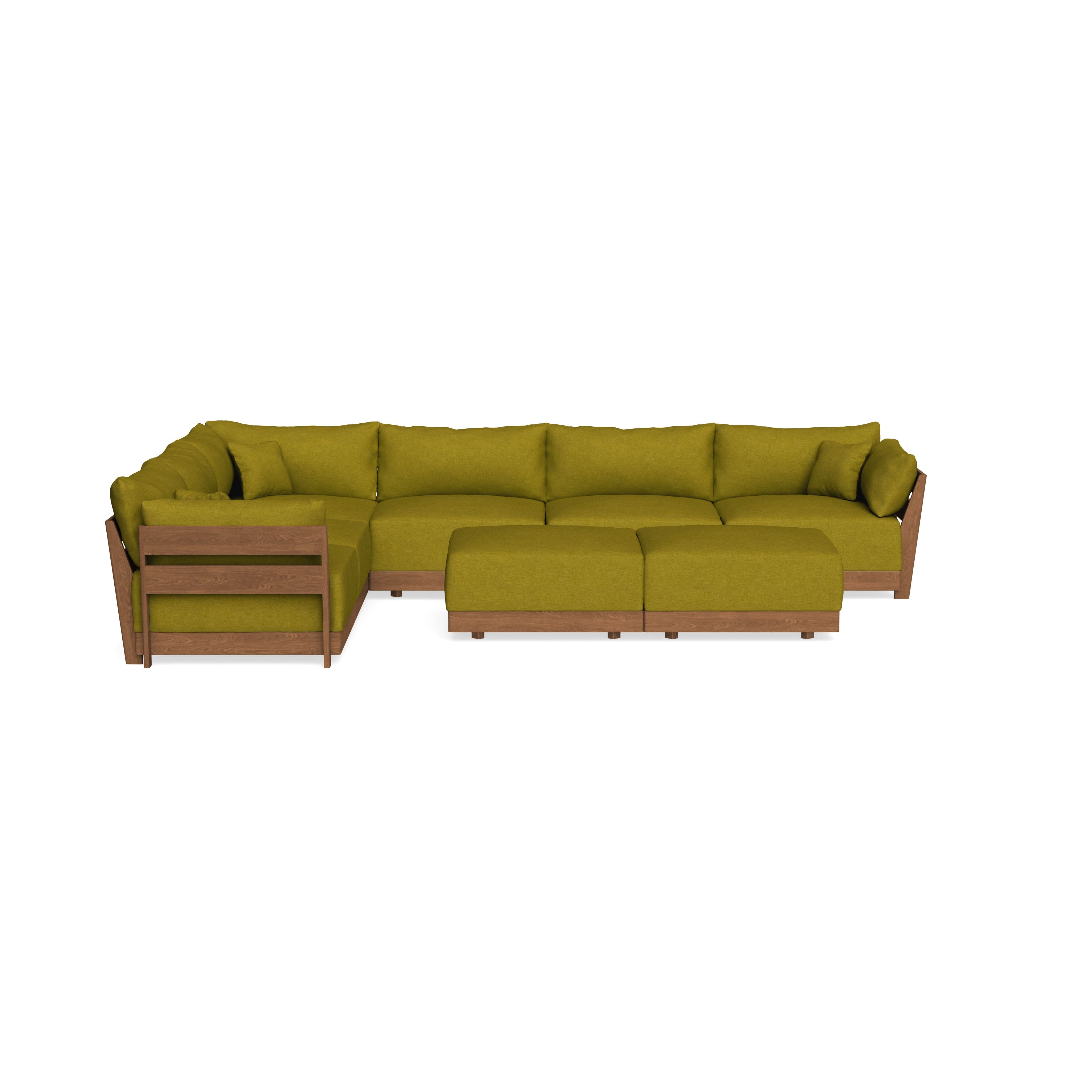 Modular Bondi Espresso 6-Seater Corner Sectional + Bench Ottoman in Olive Green | Classic Blend