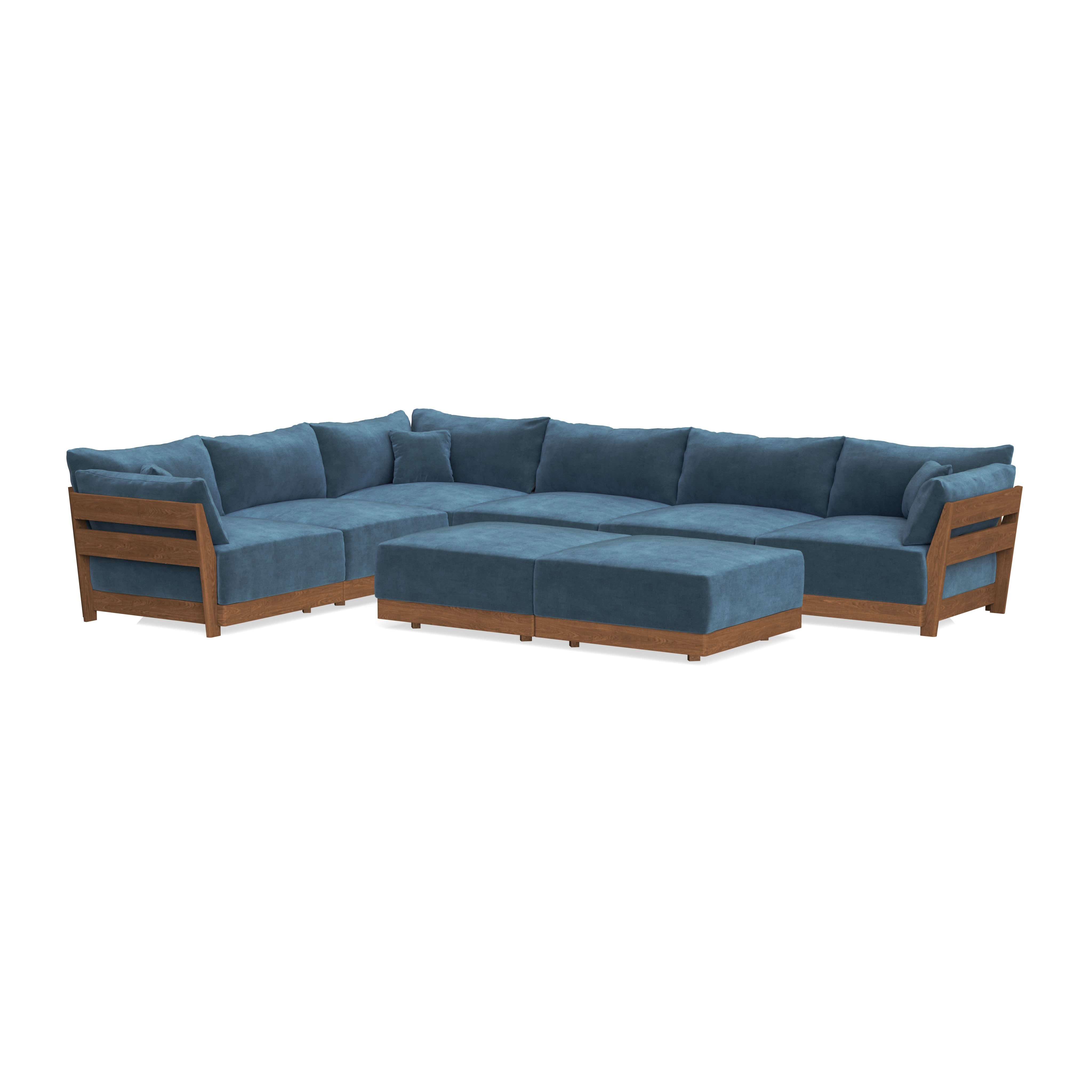 Modular Bondi Espresso 6-Seater Corner Sectional + Bench Ottoman in Oxford Blue | Classic Blend