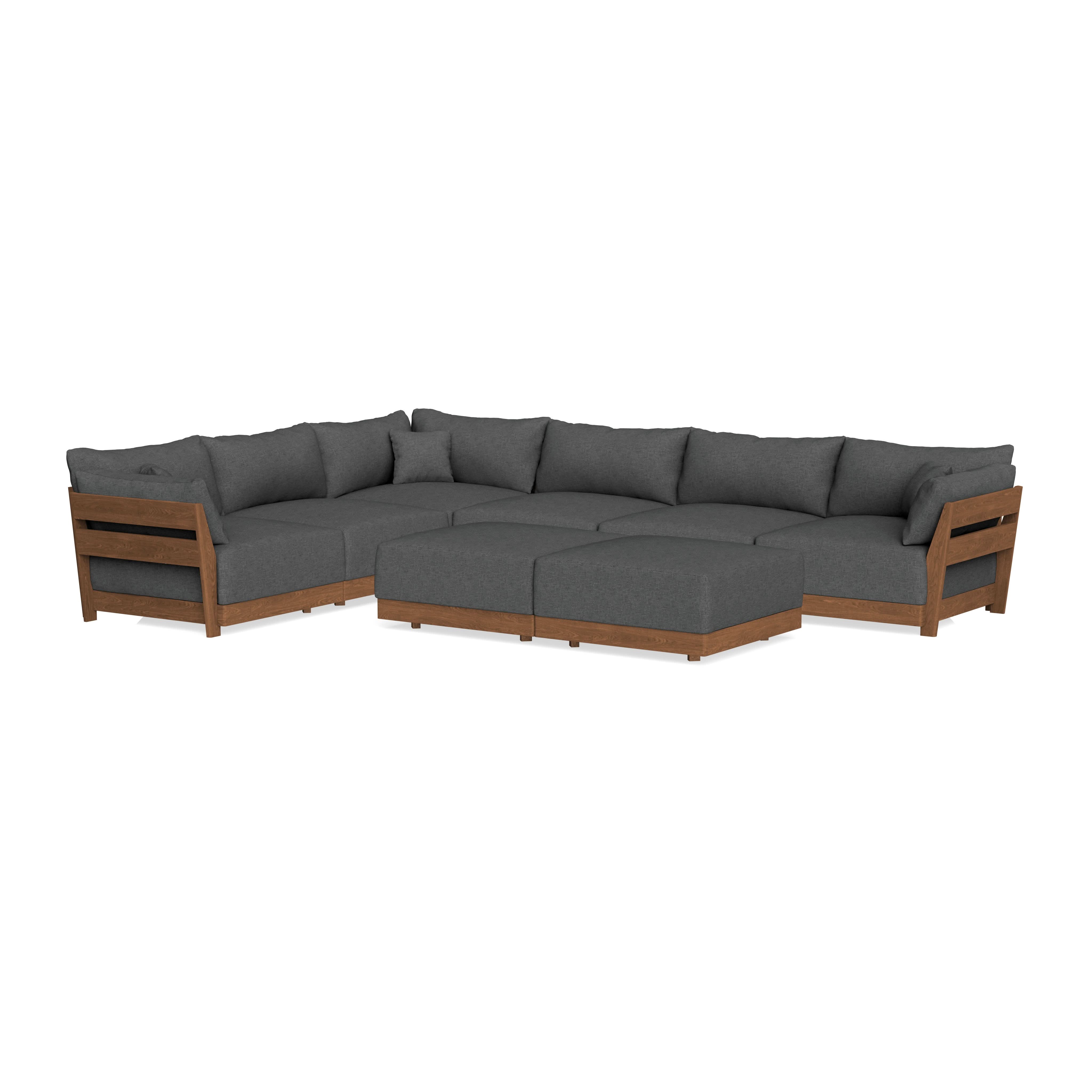 Modular Bondi Espresso 6-Seater Corner Sectional + Bench Ottoman in Pebble | Classic Blend