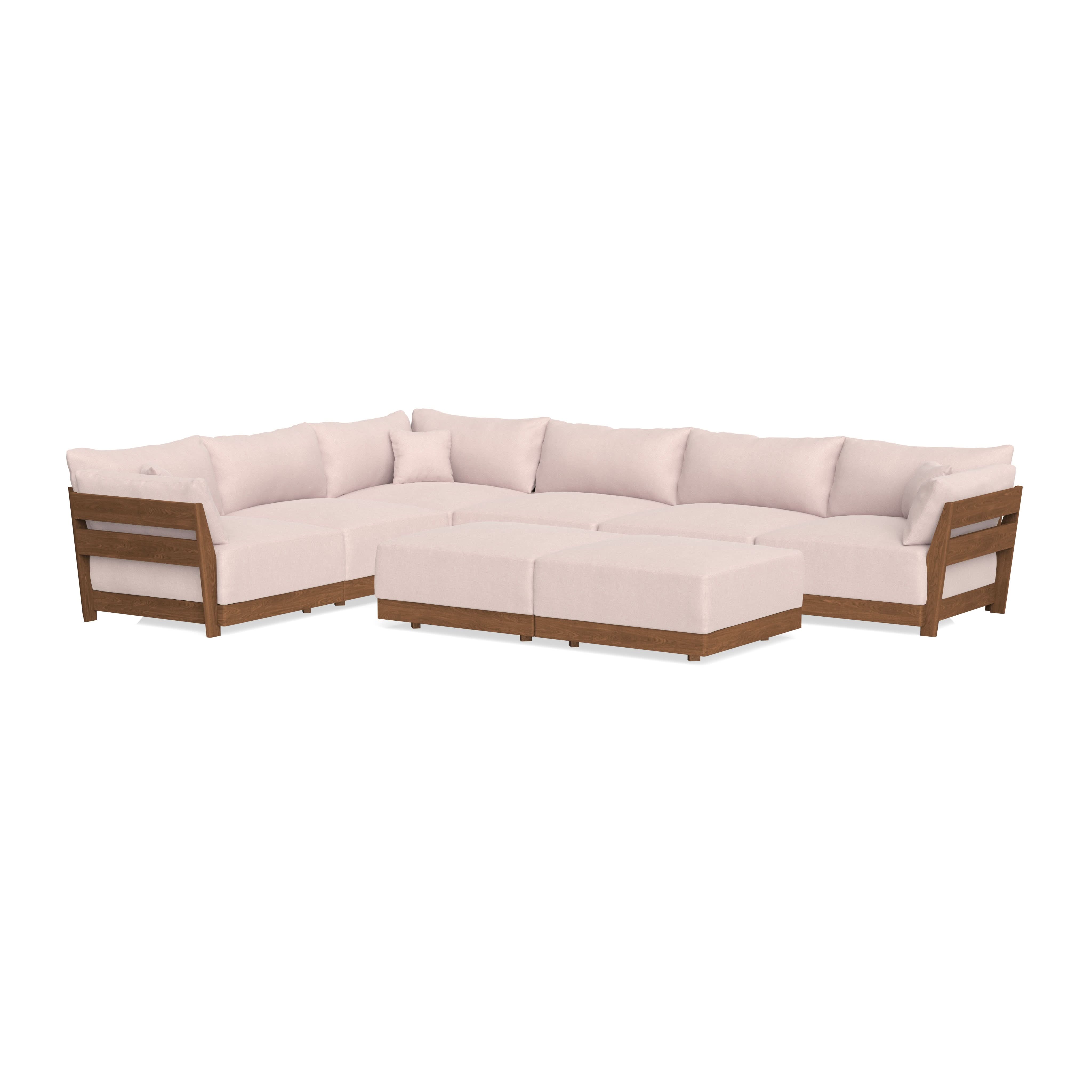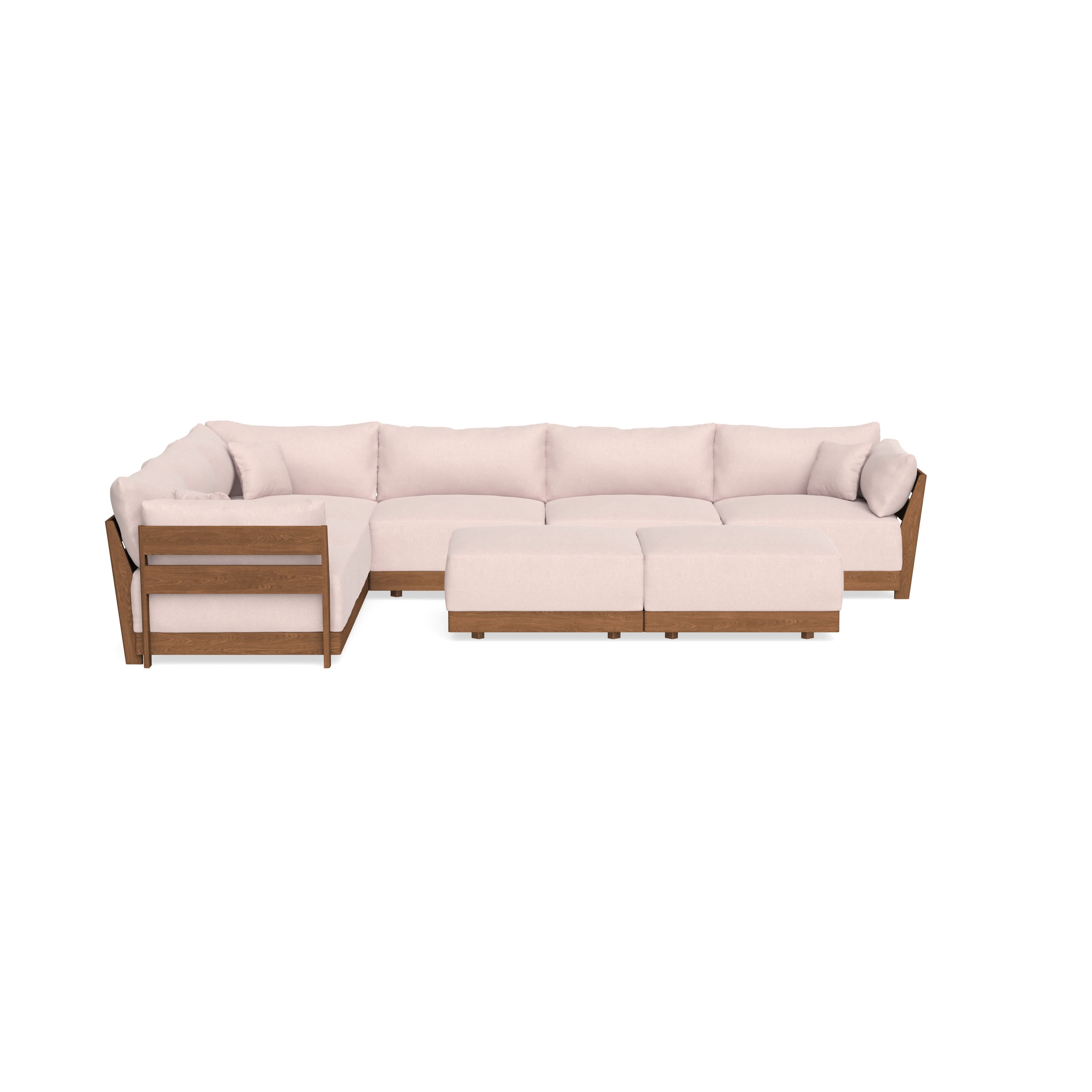 Modular Bondi Espresso 6-Seater Corner Sectional + Bench Ottoman in Peony | Memory Foam Blend