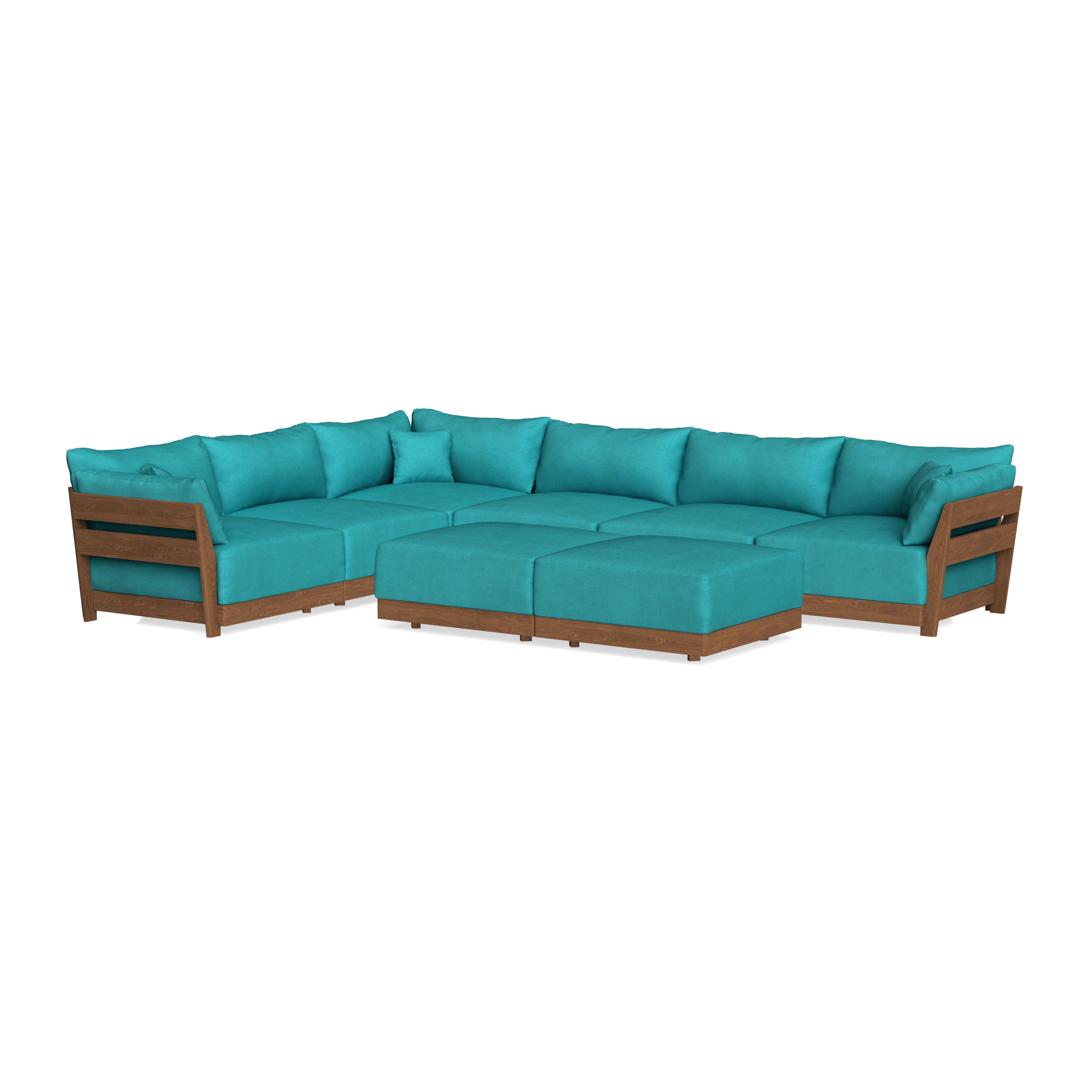 Modular Bondi Espresso 6-Seater Corner Sectional + Bench Ottoman in Pool | Classic Blend