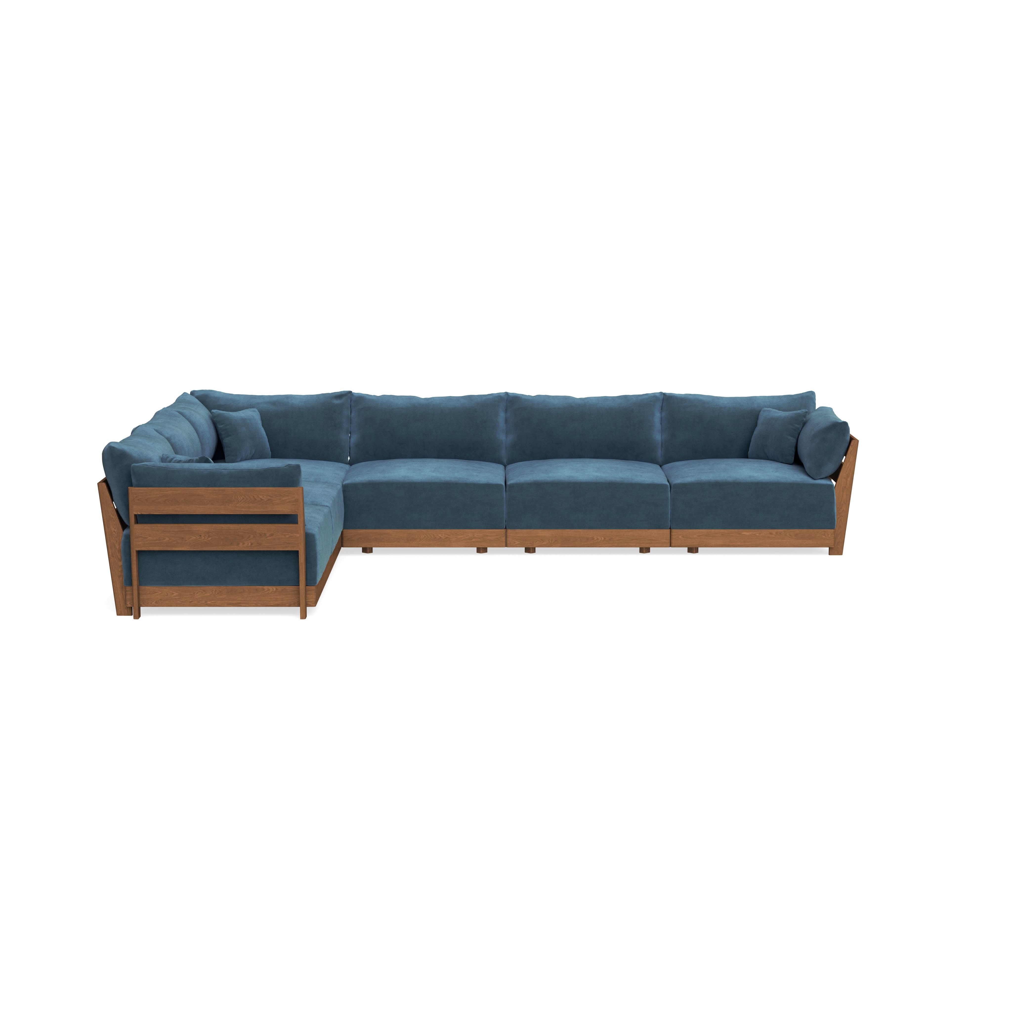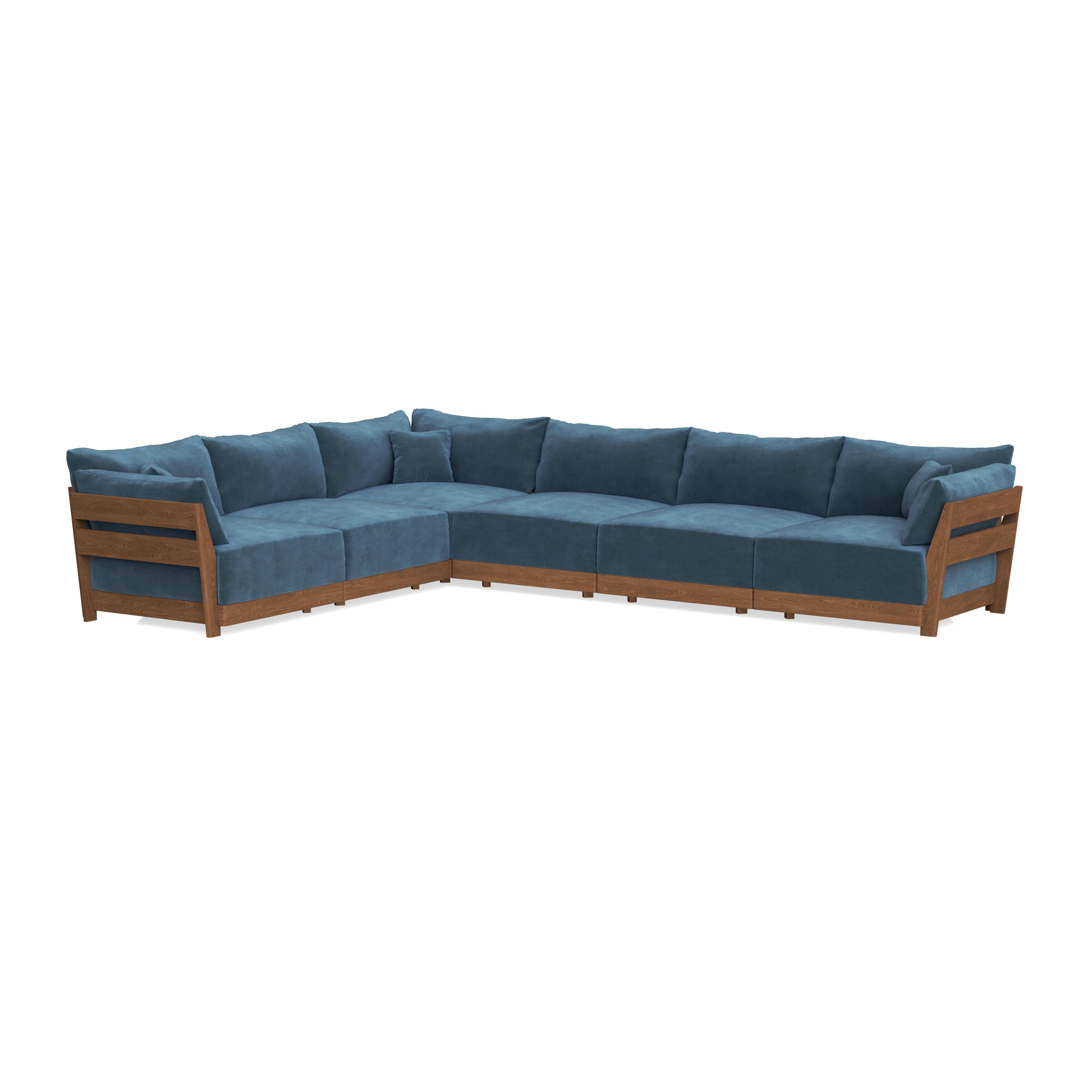 Modular Bondi Espresso 6-Seater Corner Sectional in Oxford Blue | Memory Foam Blend