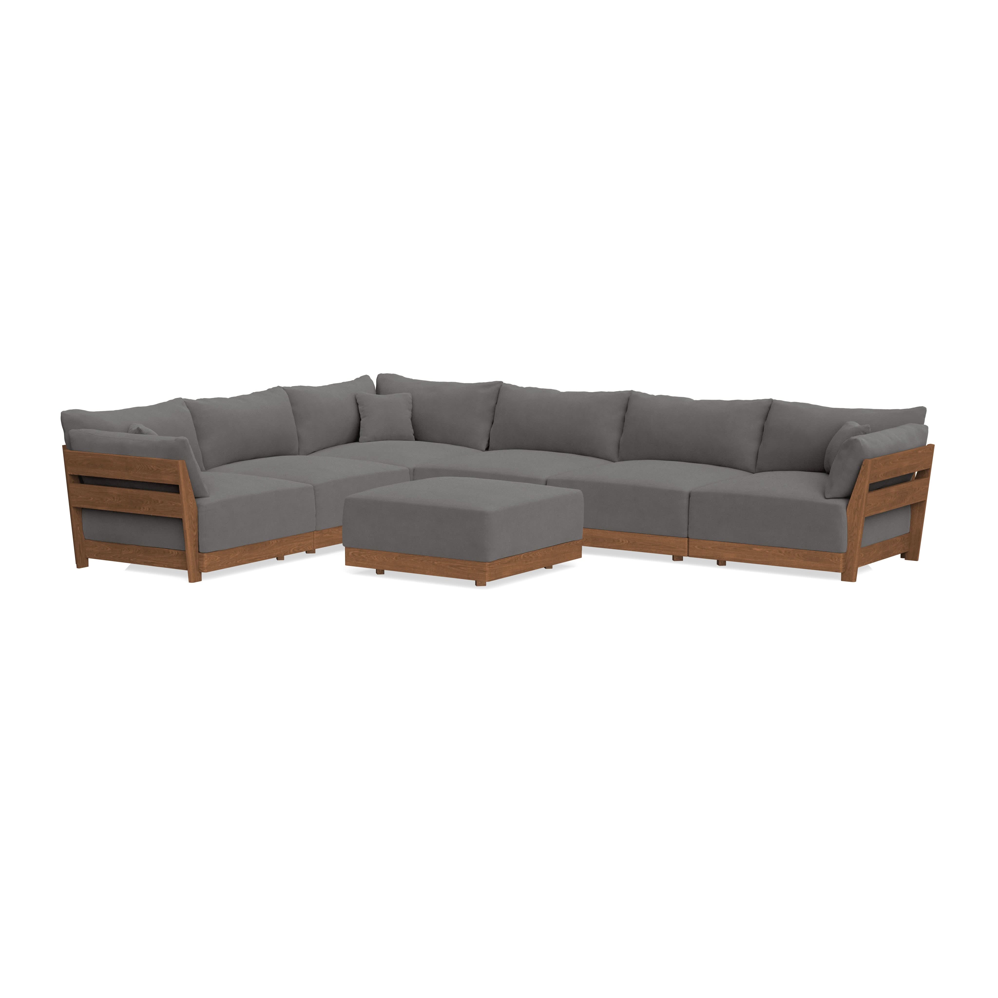Made to move and adapt with your ever-changing lifestyle. Every patent pending seat block is alike and can be used in the middle, on the end, or as a corner piece in your sofa. Likewise, every slatted solid wood panel is identical and can be used as either an “arm” or a “back”. And the ottomans? Also adaptable! Ottomans can stand alone or serve as an extension to your sofa by connecting to any seat module at its base.