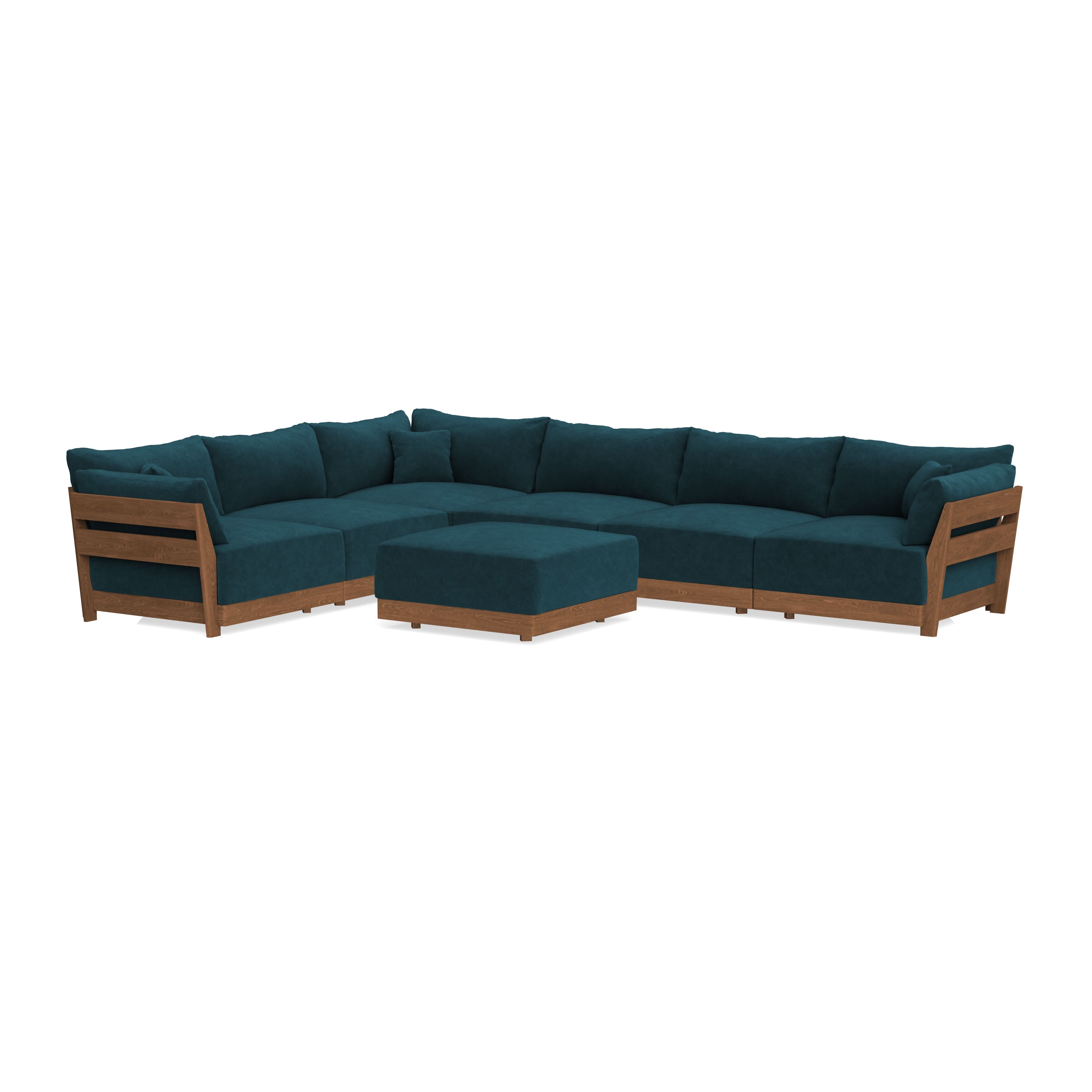 Made to move and adapt with your ever-changing lifestyle. Every patent pending seat block is alike and can be used in the middle, on the end, or as a corner piece in your sofa. Likewise, every slatted solid wood panel is identical and can be used as either an “arm” or a “back”. And the ottomans? Also adaptable! Ottomans can stand alone or serve as an extension to your sofa by connecting to any seat module at its base.