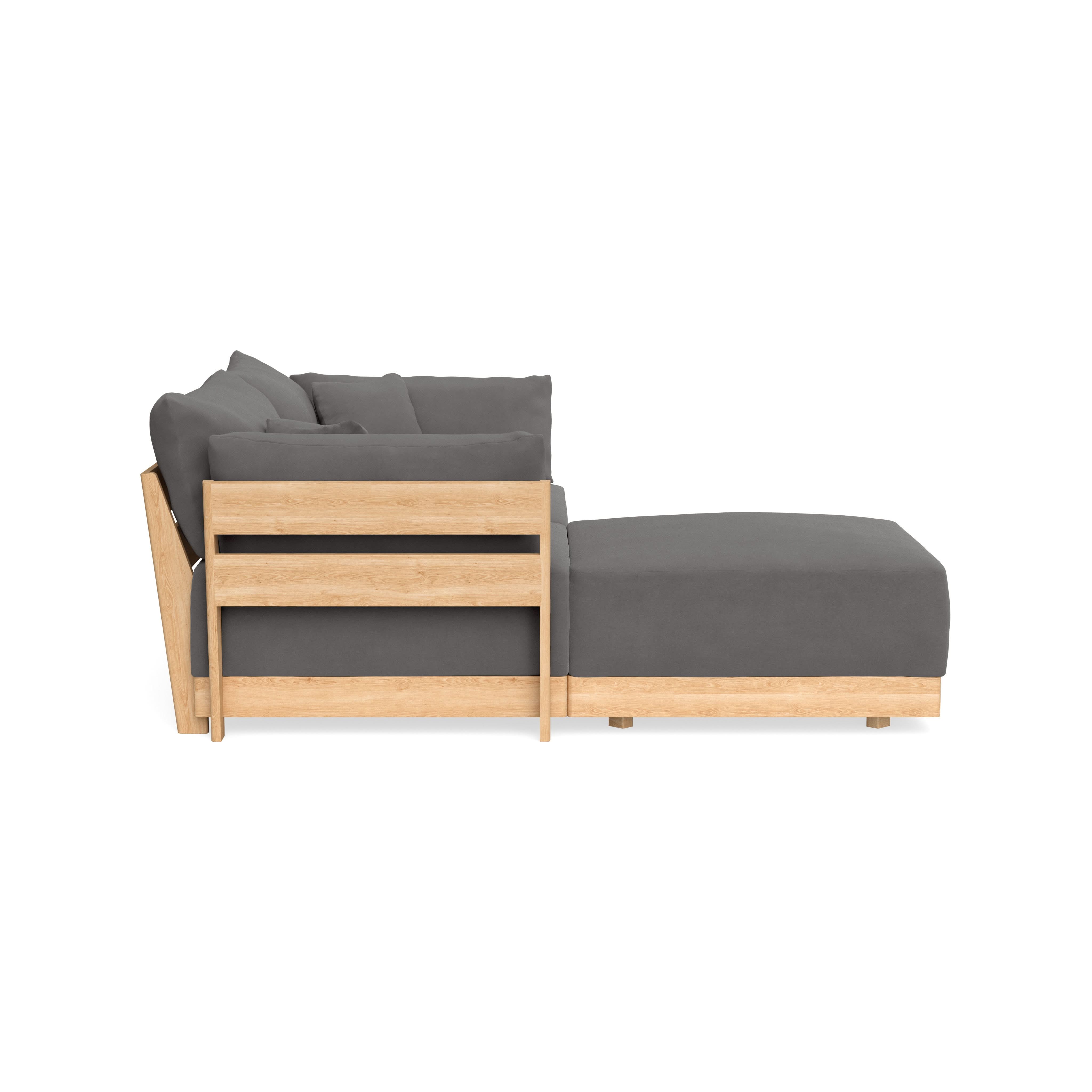 Made to move and adapt with your ever-changing lifestyle. Every patent pending seat block is alike and can be used in the middle, on the end, or as a corner piece in your sofa. Likewise, every slatted solid wood panel is identical and can be used as either an “arm” or a “back”. And the ottomans? Also adaptable! Ottomans can stand alone or serve as an extension to your sofa by connecting to any seat module at its base.