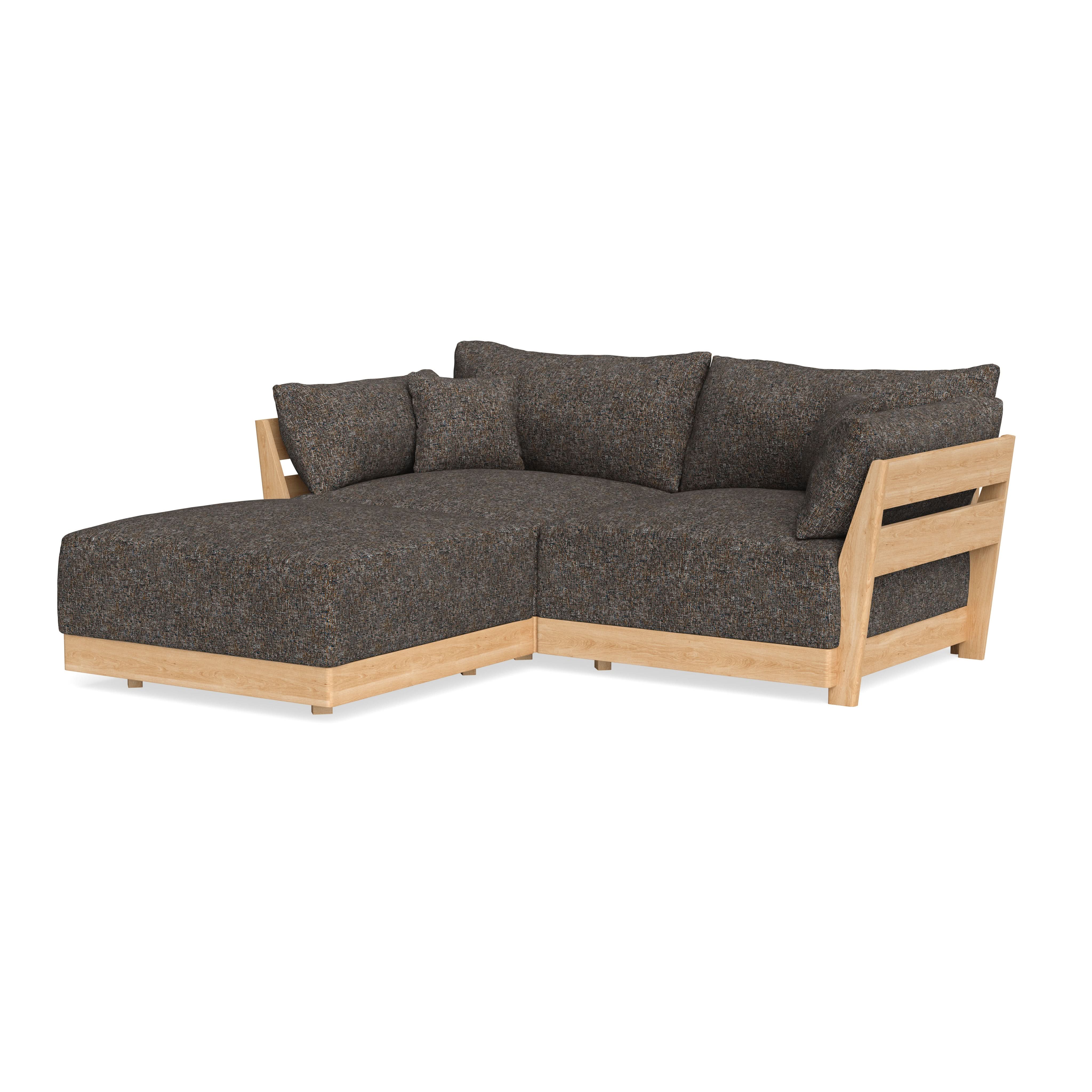 Every seat block is alike and can be used in the middle, on the end, or as a corner piece in your sofa. Each solid wood arm/back panel is identical and can be attached to any three sides of a seat block. Ottomans are adaptable too, as they can stand alone or serve as an extension to your sofa by being attached to any seat block at its base. Note that arm/back panels cannot be attached to an ottoman base.