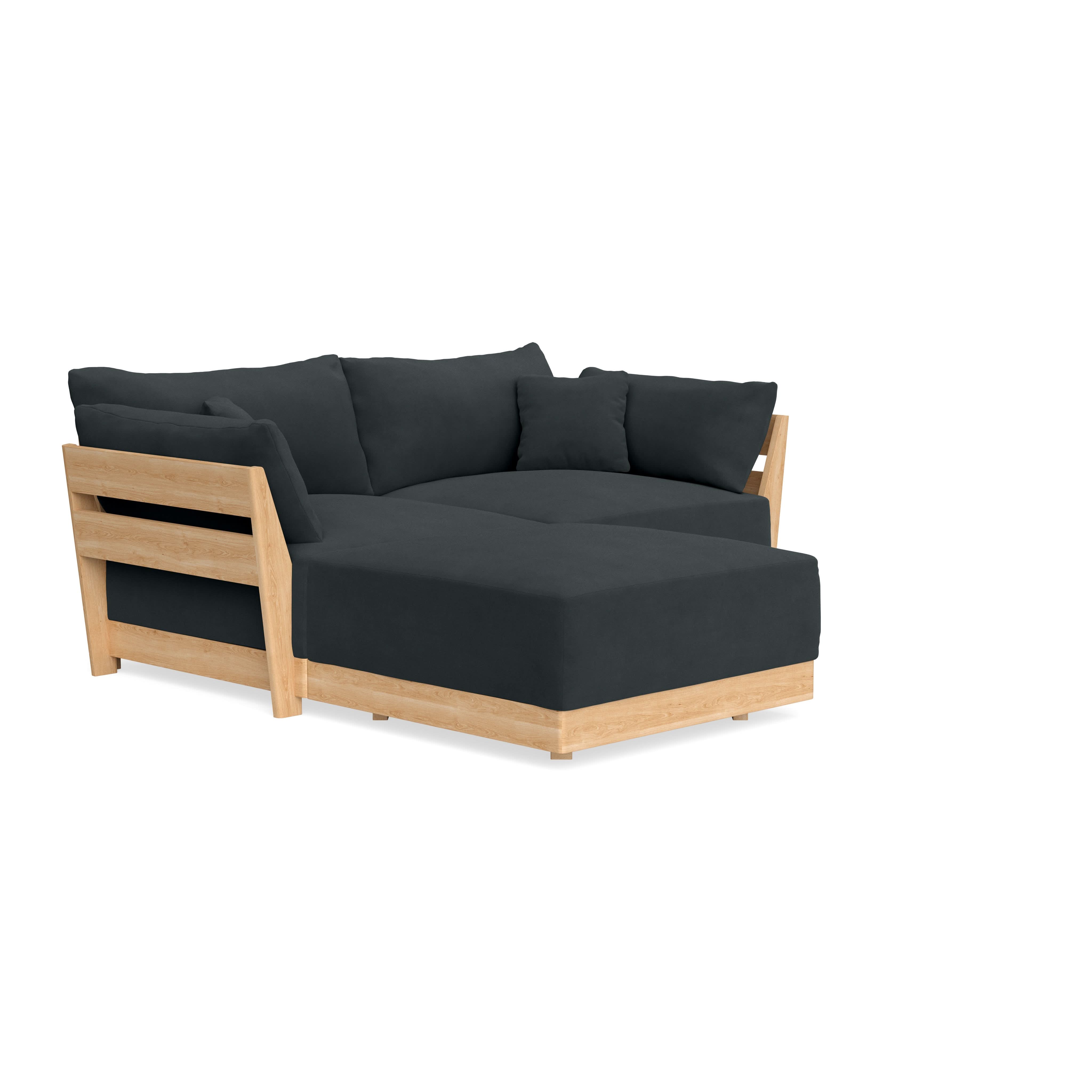 Made to move and adapt with your ever-changing lifestyle. Every patent pending seat block is alike and can be used in the middle, on the end, or as a corner piece in your sofa. Likewise, every slatted solid wood panel is identical and can be used as either an “arm” or a “back”. And the ottomans? Also adaptable! Ottomans can stand alone or serve as an extension to your sofa by connecting to any seat module at its base.