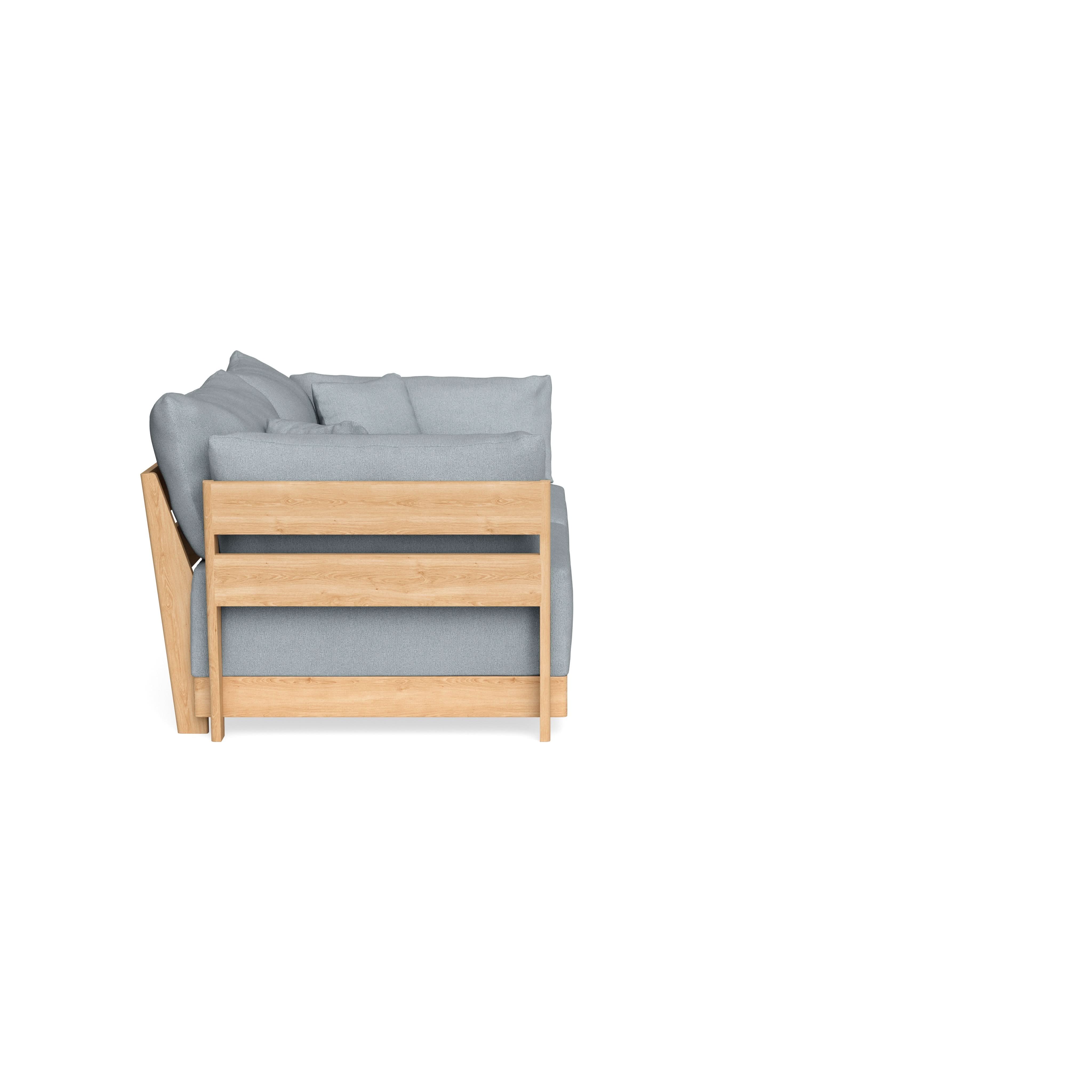 Made to move and adapt with your ever-changing lifestyle. Every patent pending seat block is alike and can be used in the middle, on the end, or as a corner piece in your sofa. Likewise, every slatted solid wood panel is identical and can be used as either an “arm” or a “back”. And the ottomans? Also adaptable! Ottomans can stand alone or serve as an extension to your sofa by connecting to any seat module at its base.