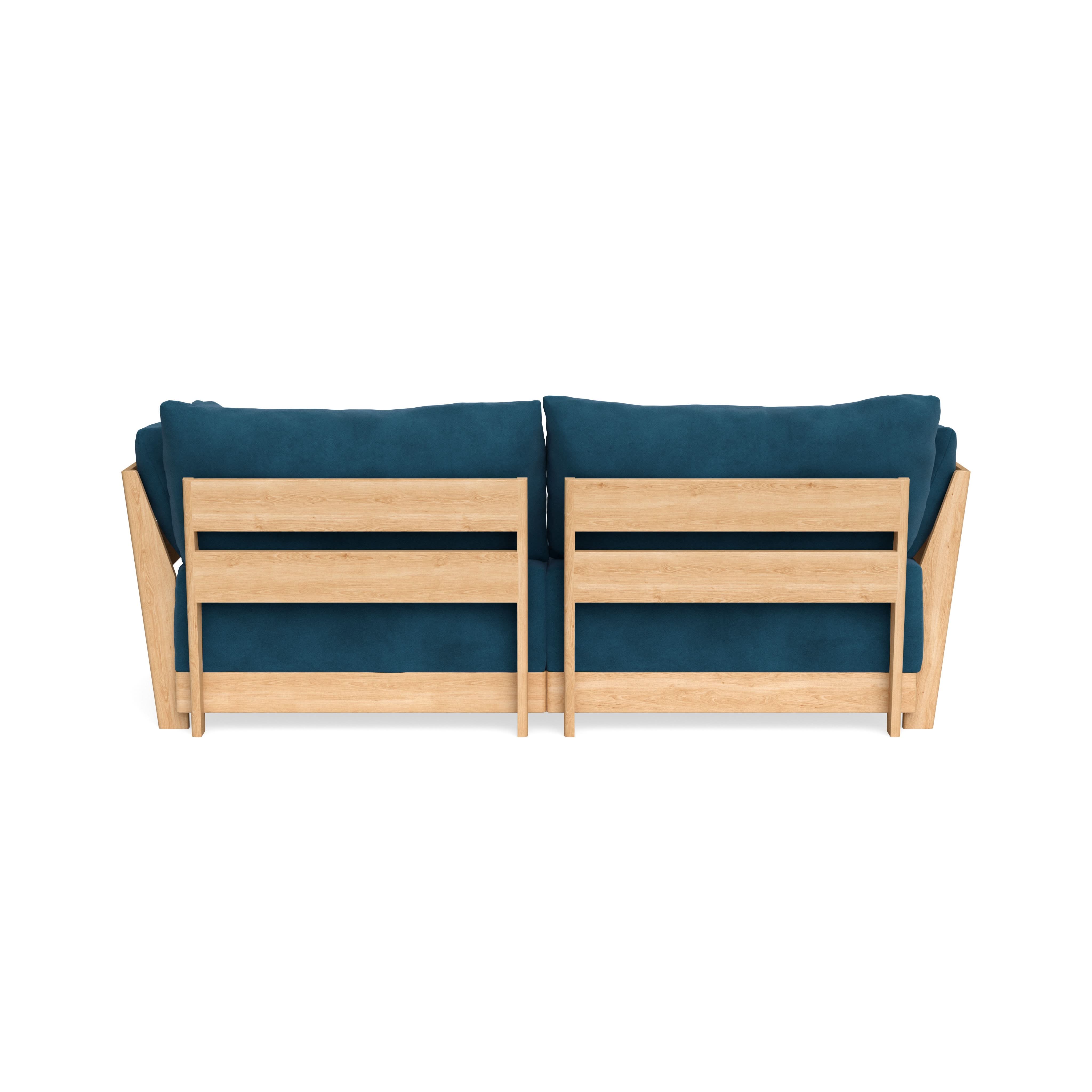 Made to move and adapt with your ever-changing lifestyle. Every patent pending seat block is alike and can be used in the middle, on the end, or as a corner piece in your sofa. Likewise, every slatted solid wood panel is identical and can be used as either an “arm” or a “back”. And the ottomans? Also adaptable! Ottomans can stand alone or serve as an extension to your sofa by connecting to any seat module at its base.