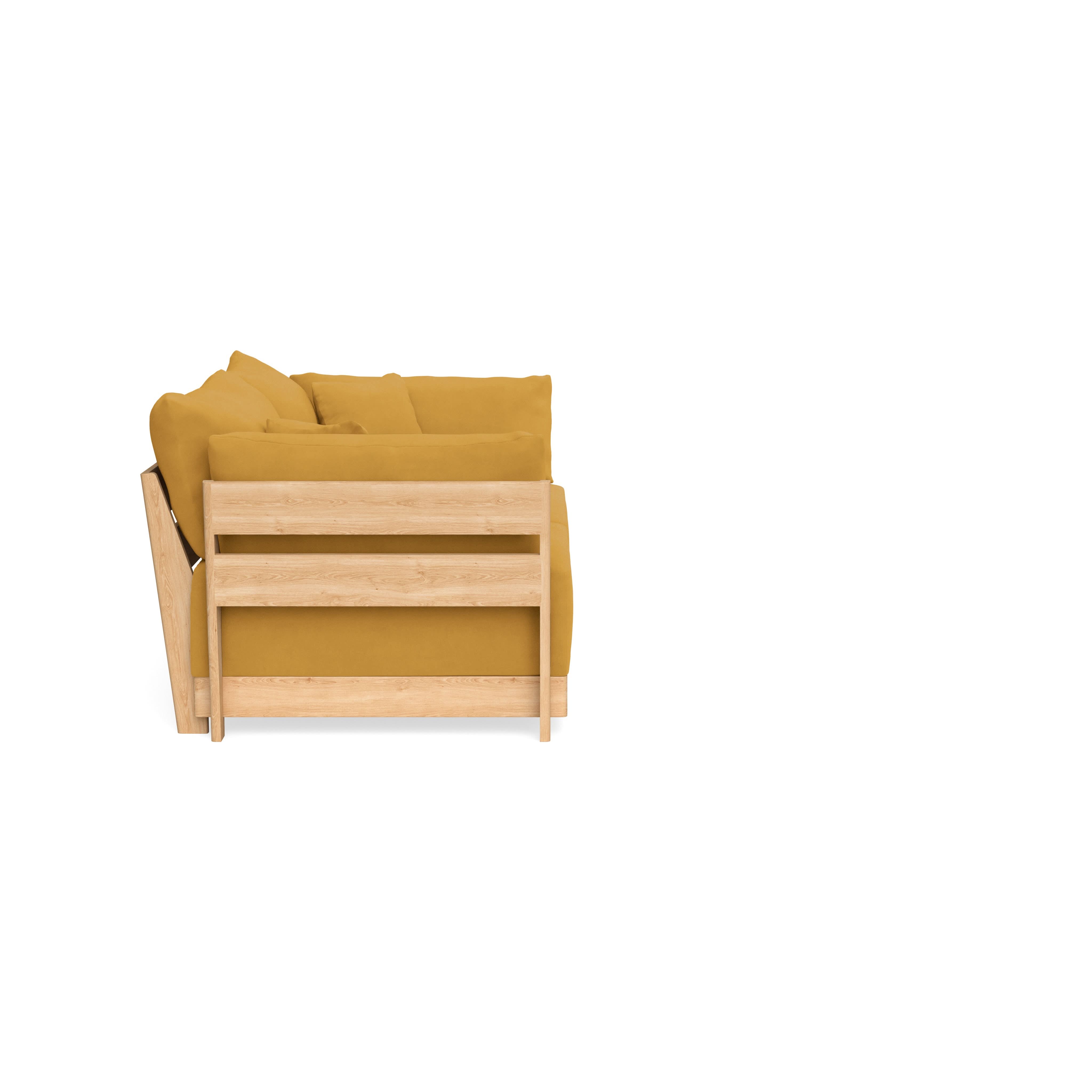 Made to move and adapt with your ever-changing lifestyle. Every patent pending seat block is alike and can be used in the middle, on the end, or as a corner piece in your sofa. Likewise, every slatted solid wood panel is identical and can be used as either an “arm” or a “back”. And the ottomans? Also adaptable! Ottomans can stand alone or serve as an extension to your sofa by connecting to any seat module at its base.