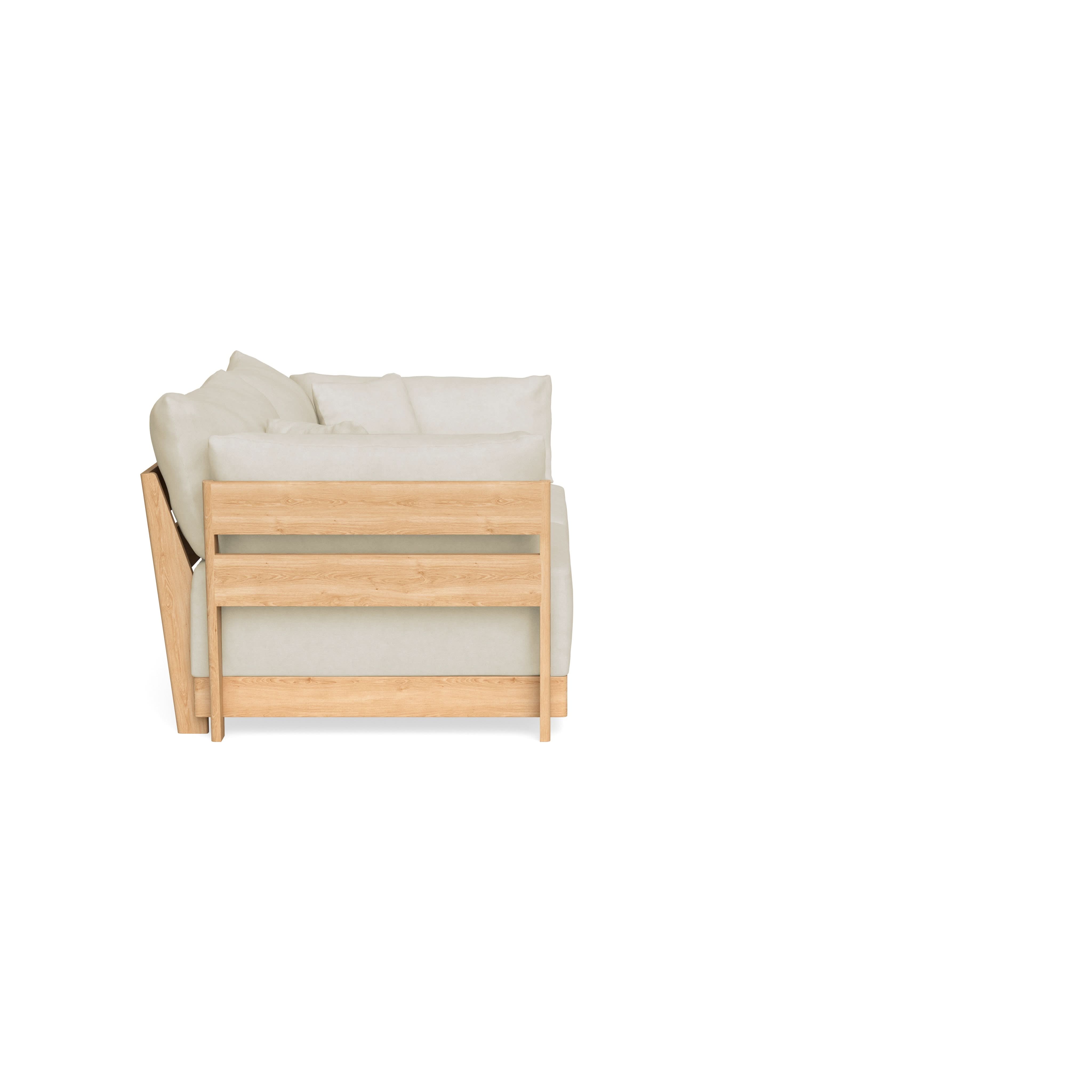 Made to move and adapt with your ever-changing lifestyle. Every patent pending seat block is alike and can be used in the middle, on the end, or as a corner piece in your sofa. Likewise, every slatted solid wood panel is identical and can be used as either an “arm” or a “back”. And the ottomans? Also adaptable! Ottomans can stand alone or serve as an extension to your sofa by connecting to any seat module at its base.
