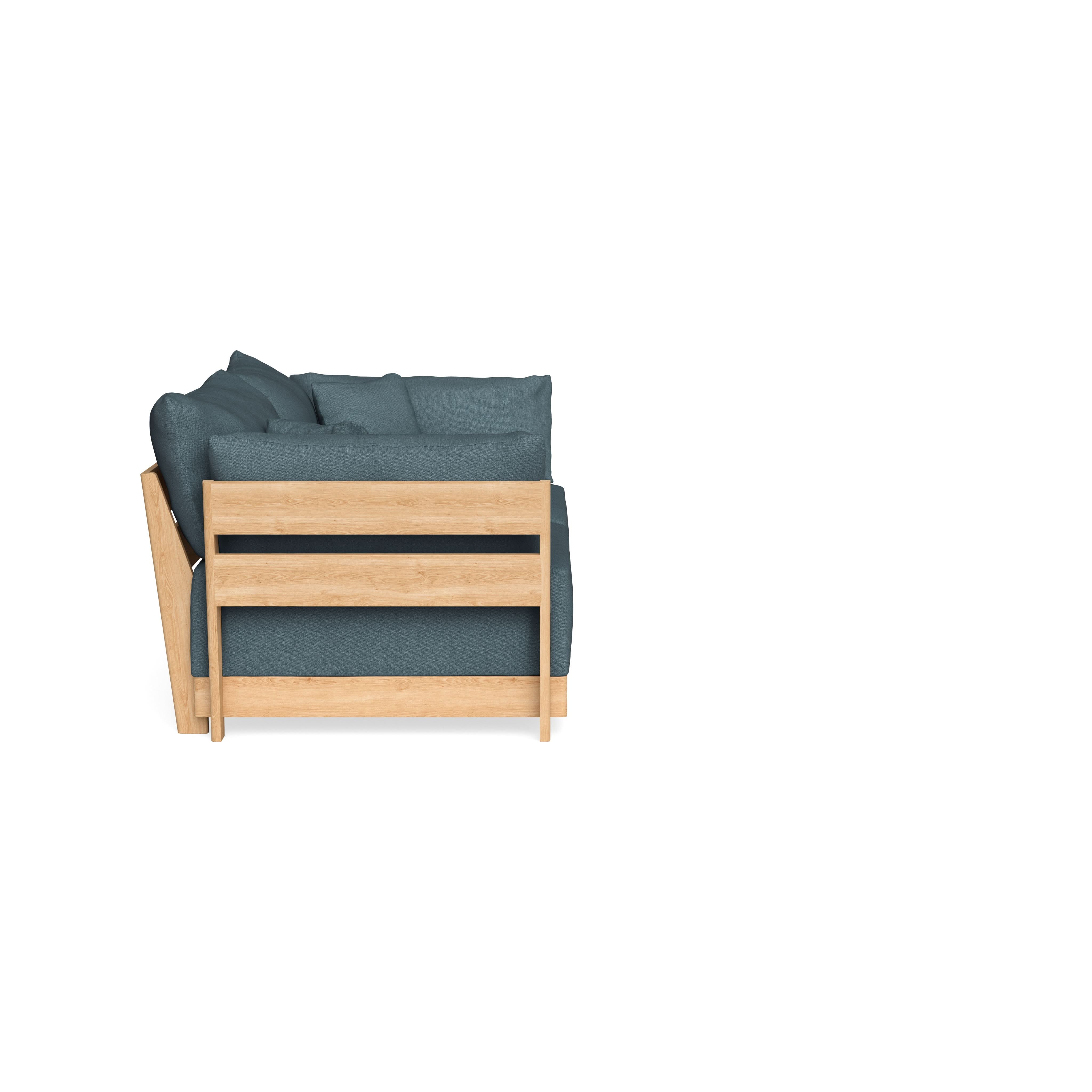 Made to move and adapt with your ever-changing lifestyle. Every patent pending seat block is alike and can be used in the middle, on the end, or as a corner piece in your sofa. Likewise, every slatted solid wood panel is identical and can be used as either an “arm” or a “back”. And the ottomans? Also adaptable! Ottomans can stand alone or serve as an extension to your sofa by connecting to any seat module at its base.