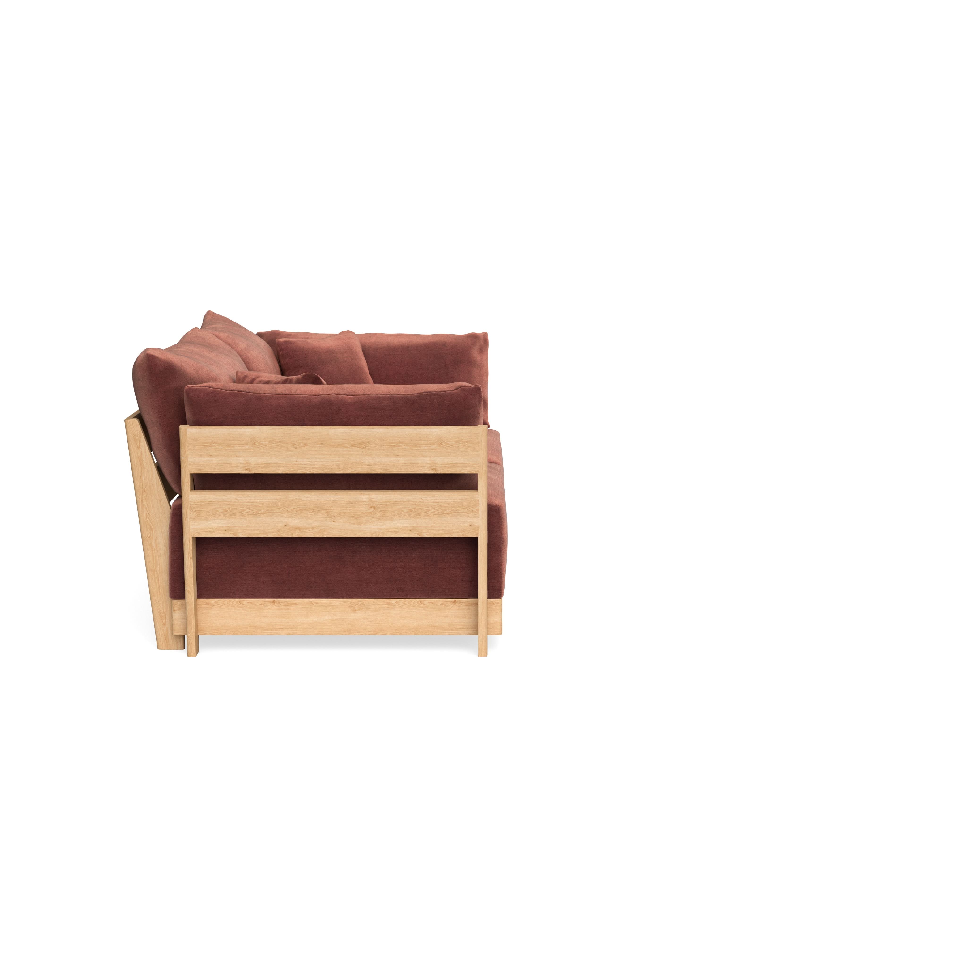 Made to move and adapt with your ever-changing lifestyle. Every patent pending seat block is alike and can be used in the middle, on the end, or as a corner piece in your sofa. Likewise, every slatted solid wood panel is identical and can be used as either an “arm” or a “back”. And the ottomans? Also adaptable! Ottomans can stand alone or serve as an extension to your sofa by connecting to any seat module at its base.