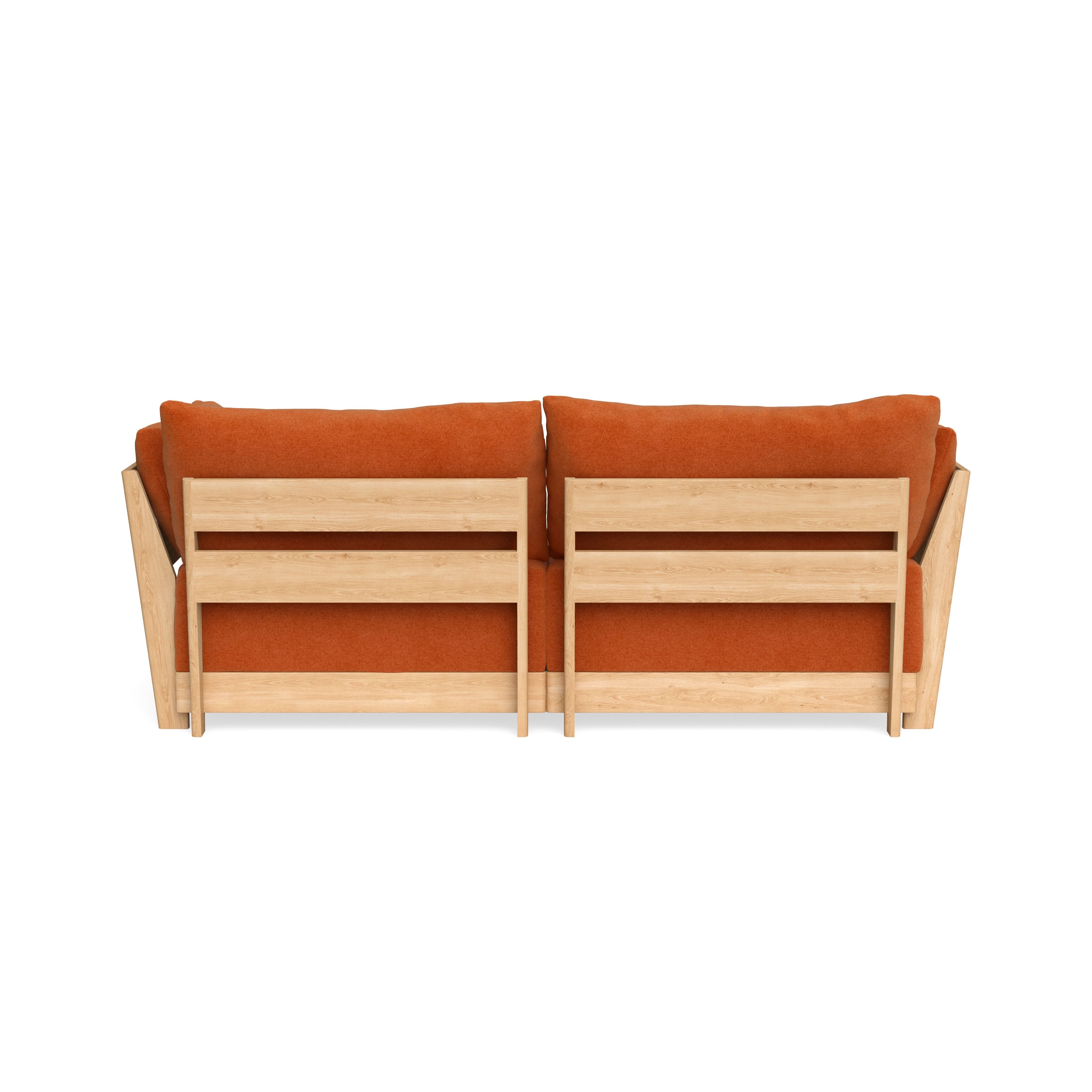 Made to move and adapt with your ever-changing lifestyle. Every patent pending seat block is alike and can be used in the middle, on the end, or as a corner piece in your sofa. Likewise, every slatted solid wood panel is identical and can be used as either an “arm” or a “back”. And the ottomans? Also adaptable! Ottomans can stand alone or serve as an extension to your sofa by connecting to any seat module at its base.