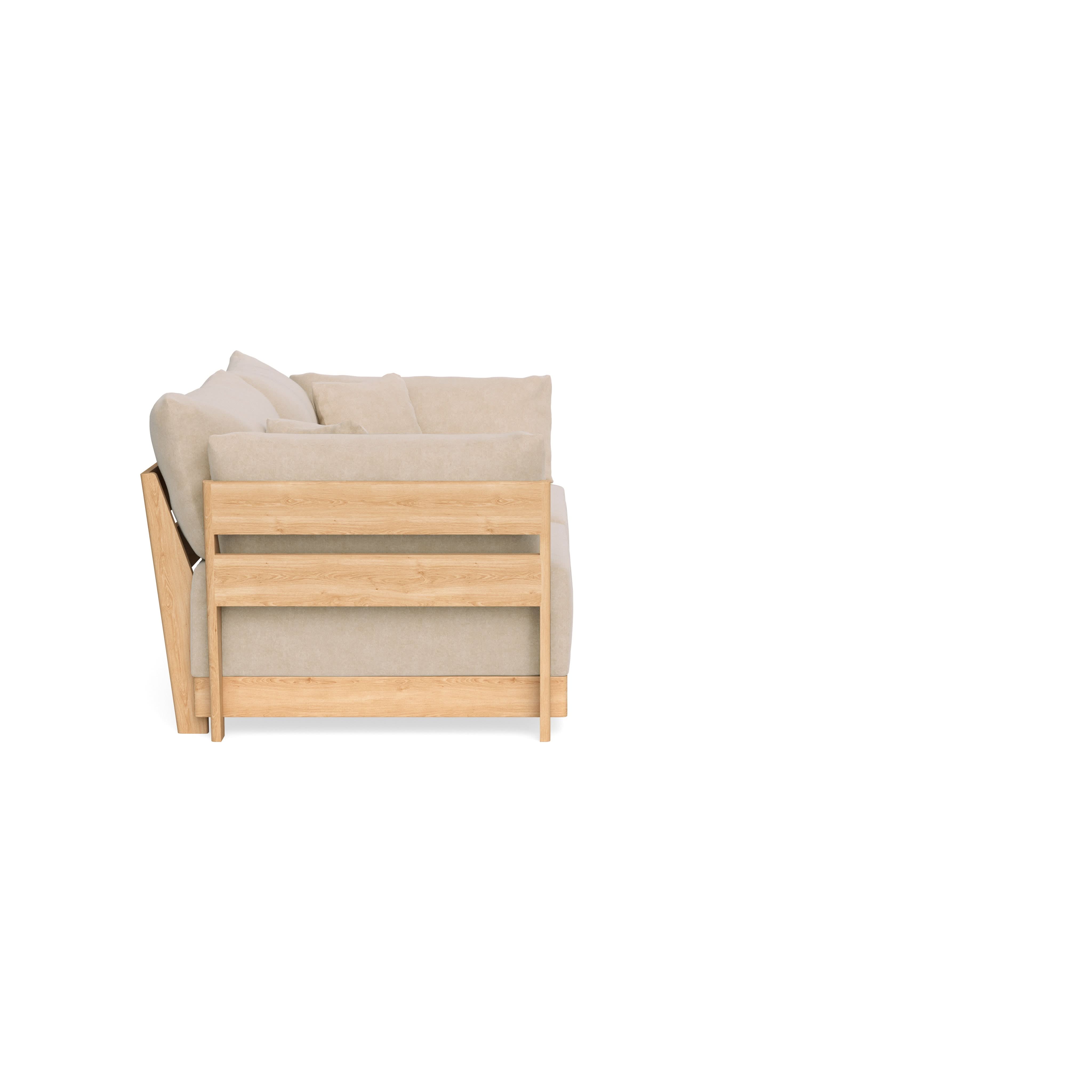 Made to move and adapt with your ever-changing lifestyle. Every patent pending seat block is alike and can be used in the middle, on the end, or as a corner piece in your sofa. Likewise, every slatted solid wood panel is identical and can be used as either an “arm” or a “back”. And the ottomans? Also adaptable! Ottomans can stand alone or serve as an extension to your sofa by connecting to any seat module at its base.