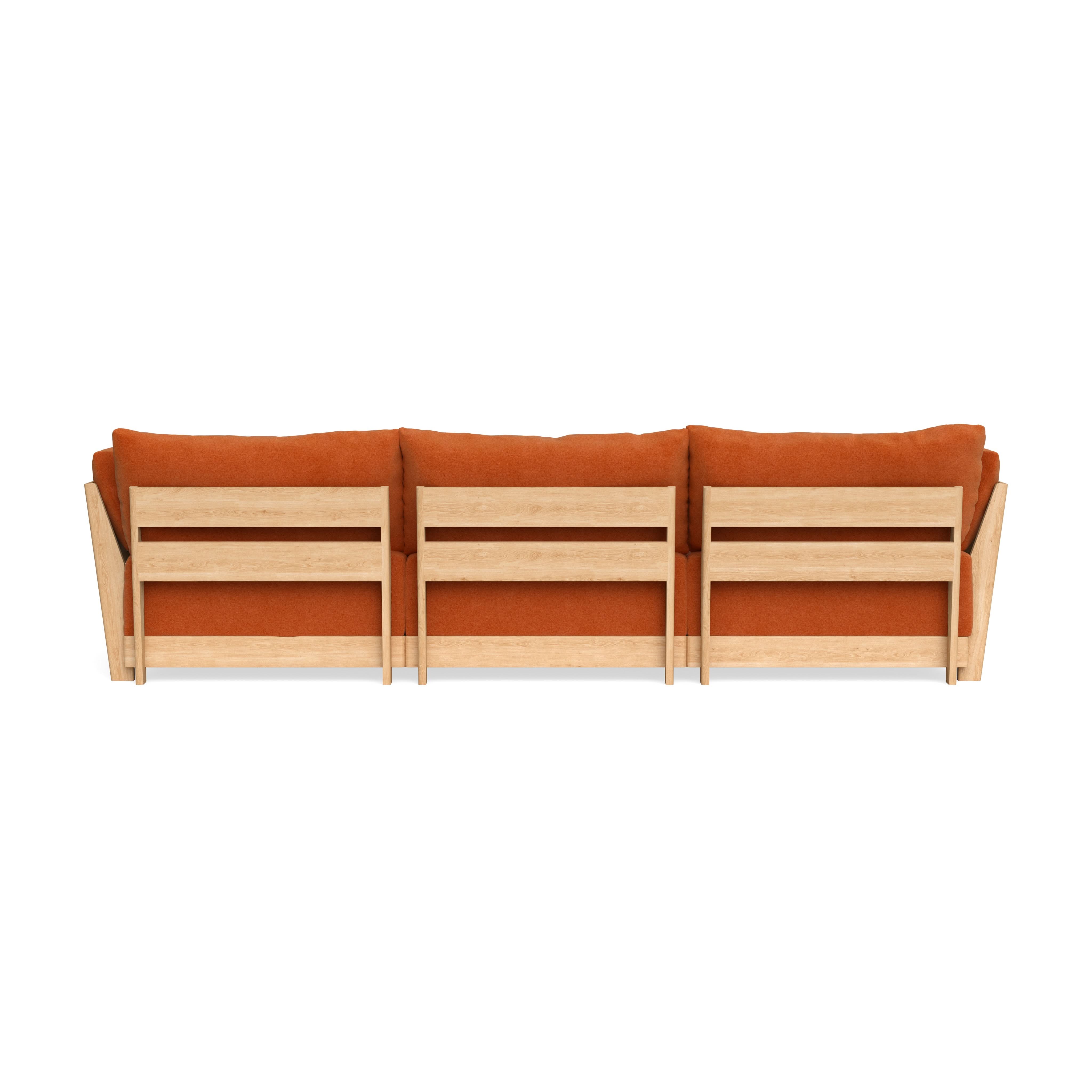 Made to move and adapt with your ever-changing lifestyle. Every patent pending seat block is alike and can be used in the middle, on the end, or as a corner piece in your sofa. Likewise, every slatted solid wood panel is identical and can be used as either an “arm” or a “back”. And the ottomans? Also adaptable! Ottomans can stand alone or serve as an extension to your sofa by connecting to any seat module at its base.