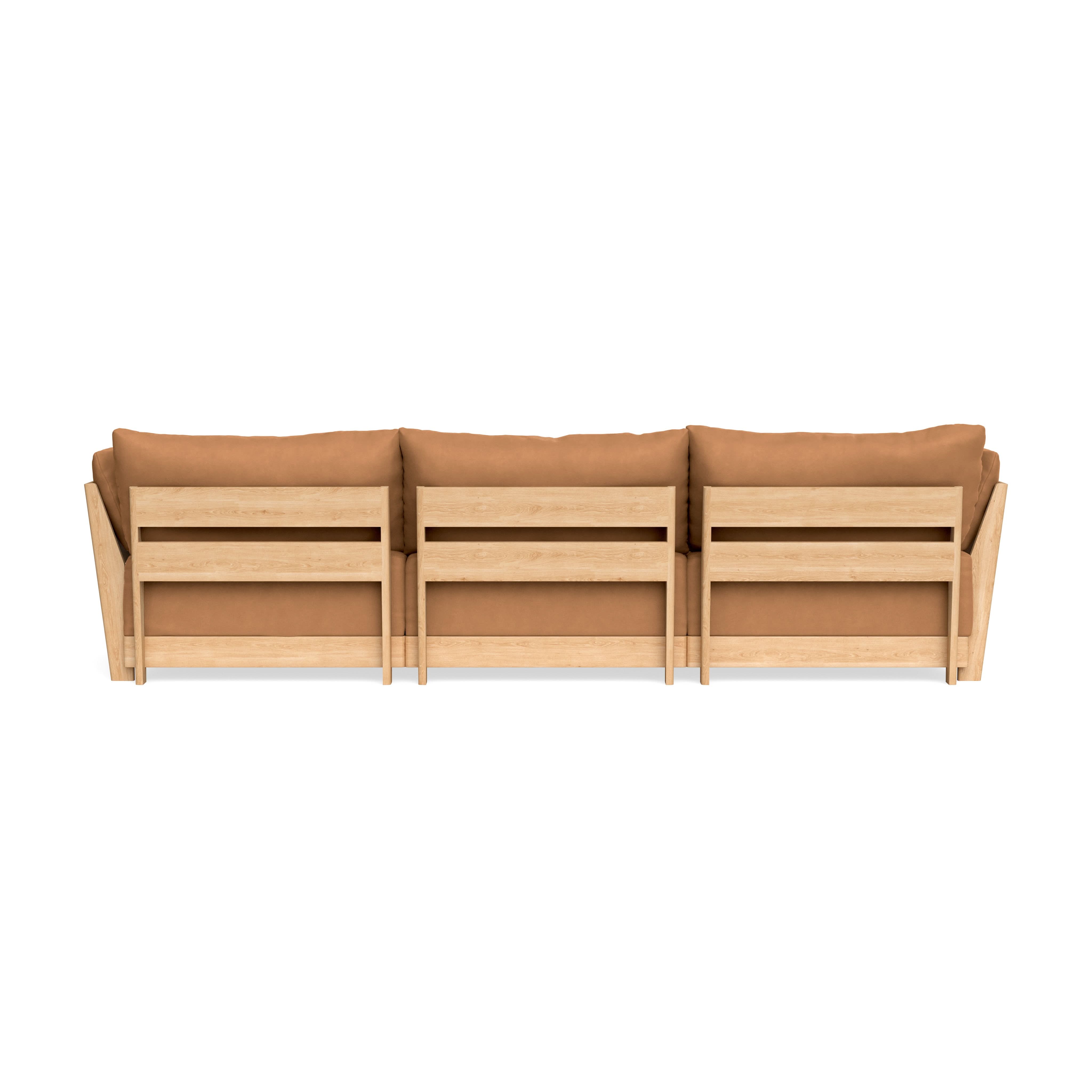 Made to move and adapt with your ever-changing lifestyle. Every patent pending seat block is alike and can be used in the middle, on the end, or as a corner piece in your sofa. Likewise, every slatted solid wood panel is identical and can be used as either an “arm” or a “back”. And the ottomans? Also adaptable! Ottomans can stand alone or serve as an extension to your sofa by connecting to any seat module at its base.