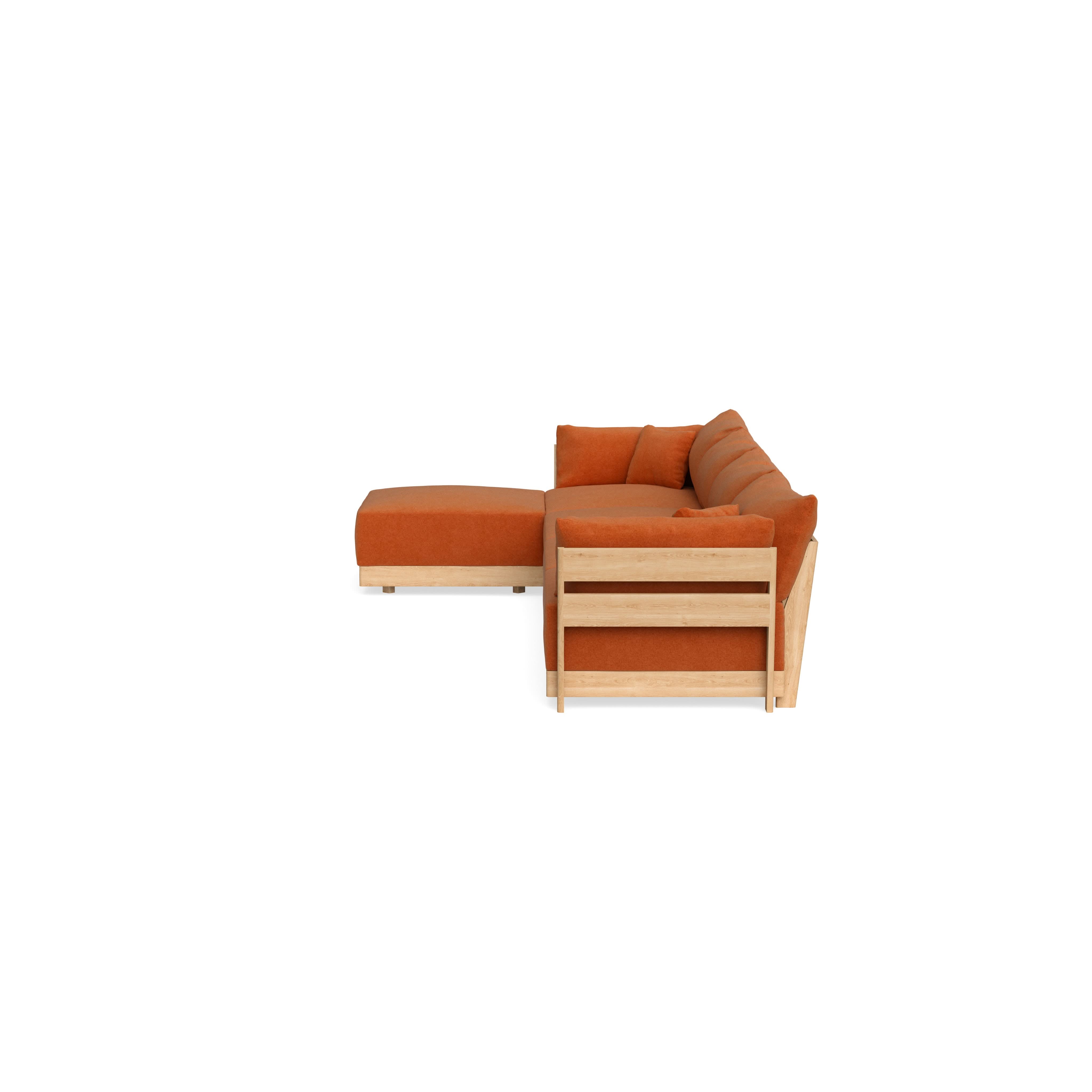 Made to move and adapt with your ever-changing lifestyle. Every patent pending seat block is alike and can be used in the middle, on the end, or as a corner piece in your sofa. Likewise, every slatted solid wood panel is identical and can be used as either an “arm” or a “back”. And the ottomans? Also adaptable! Ottomans can stand alone or serve as an extension to your sofa by connecting to any seat module at its base.