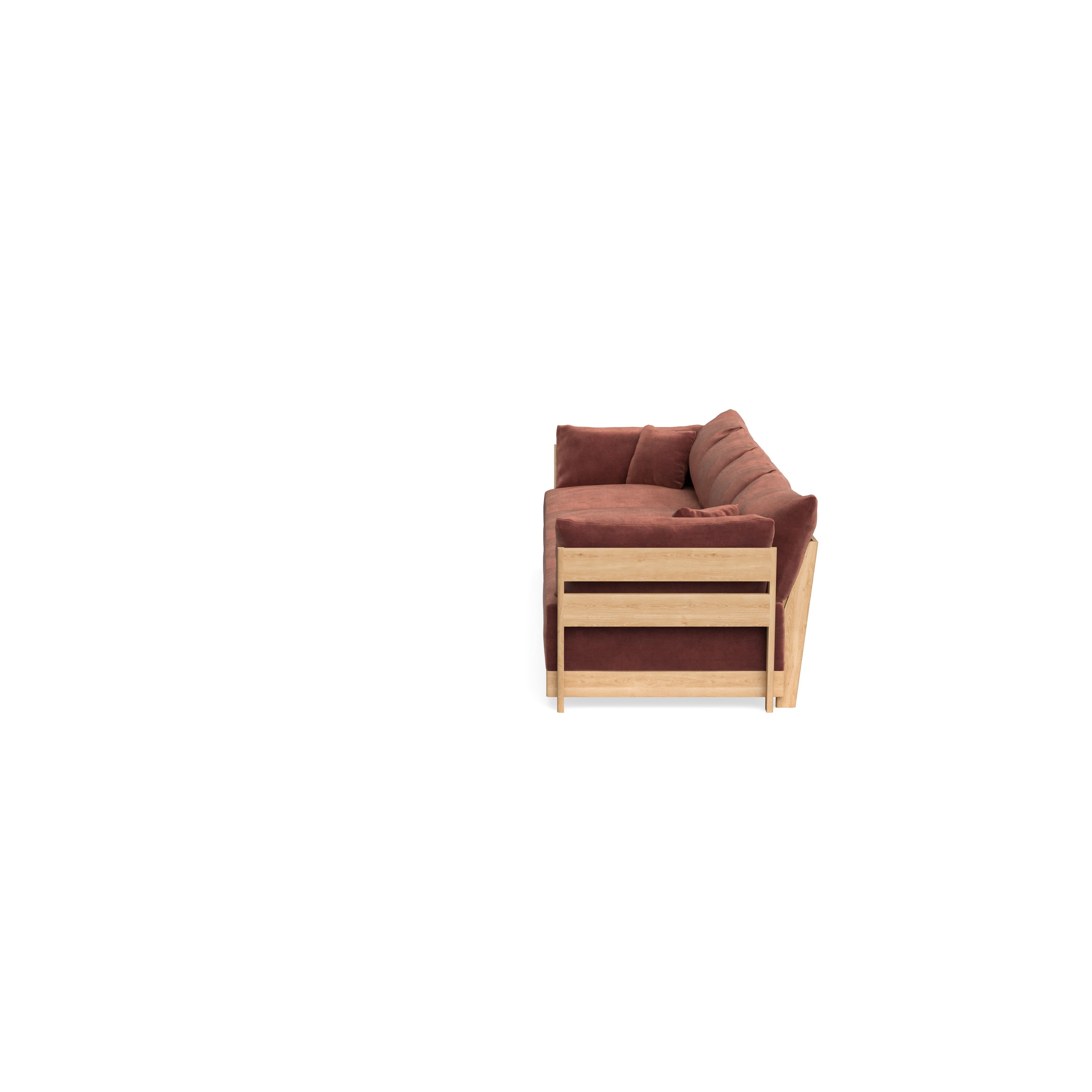 Made to move and adapt with your ever-changing lifestyle. Every patent pending seat block is alike and can be used in the middle, on the end, or as a corner piece in your sofa. Likewise, every slatted solid wood panel is identical and can be used as either an “arm” or a “back”. And the ottomans? Also adaptable! Ottomans can stand alone or serve as an extension to your sofa by connecting to any seat module at its base.