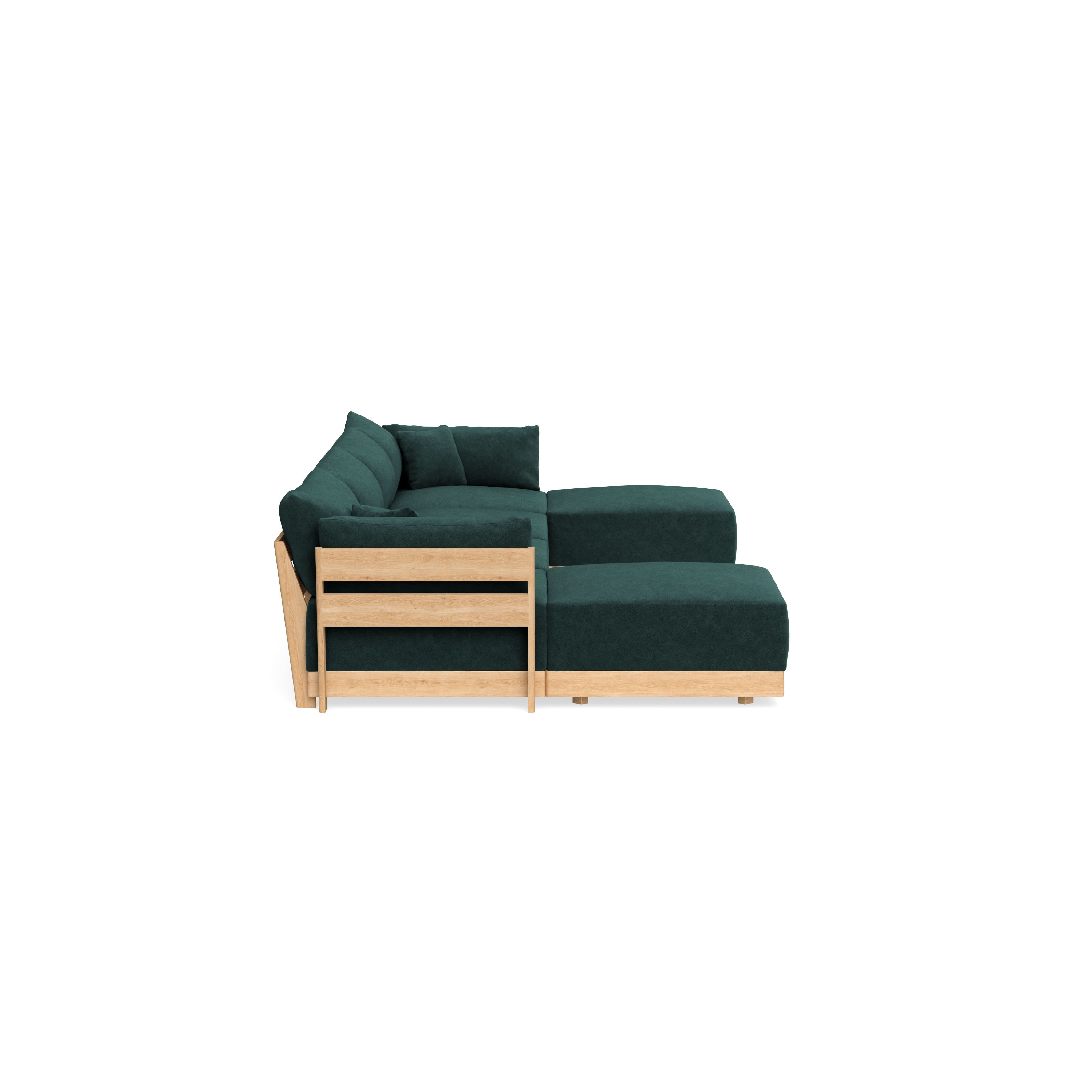Made to move and adapt with your ever-changing lifestyle. Every patent pending seat block is alike and can be used in the middle, on the end, or as a corner piece in your sofa. Likewise, every slatted solid wood panel is identical and can be used as either an “arm” or a “back”. And the ottomans? Also adaptable! Ottomans can stand alone or serve as an extension to your sofa by connecting to any seat module at its base.
