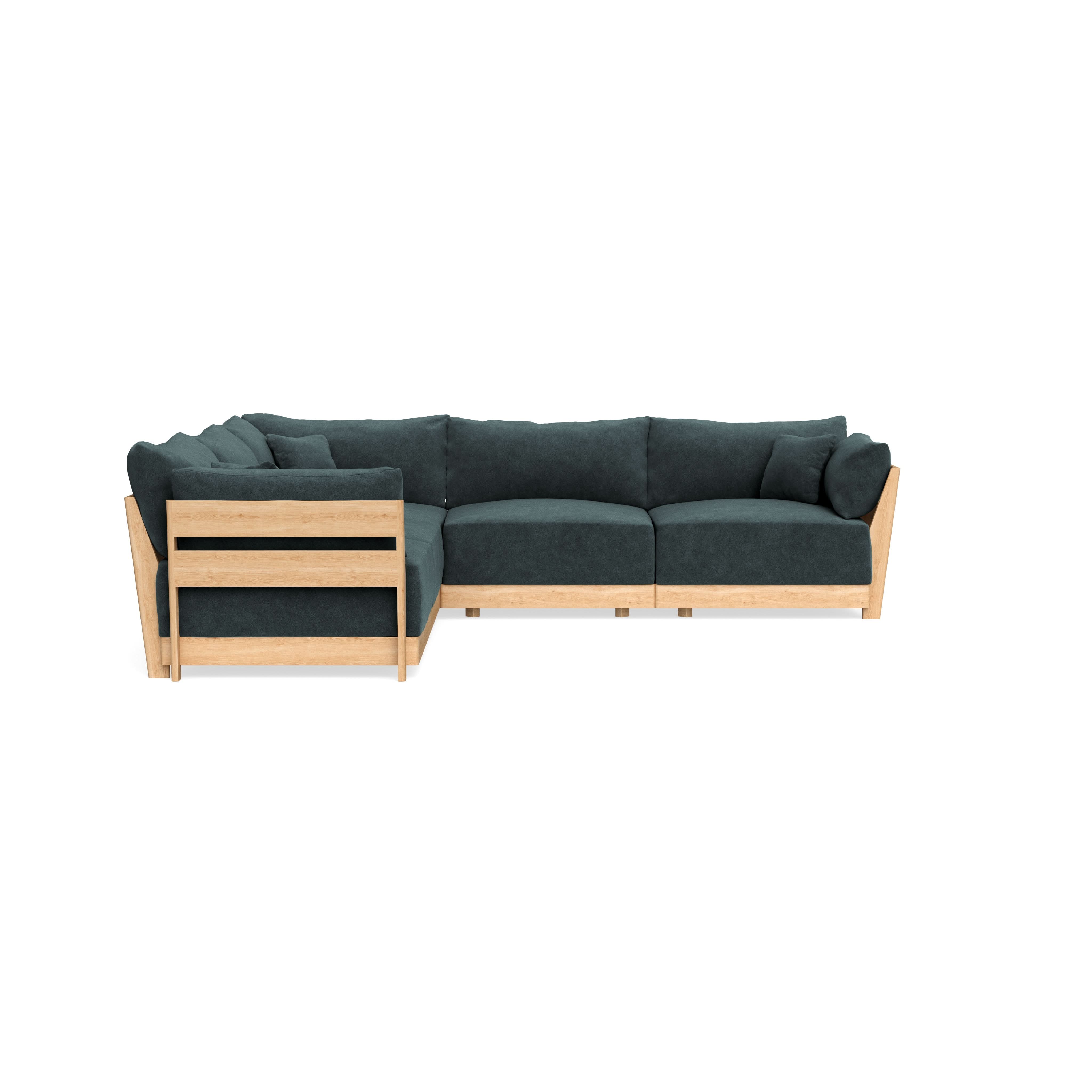 Made to move and adapt with your ever-changing lifestyle. Every patent pending seat block is alike and can be used in the middle, on the end, or as a corner piece in your sofa. Likewise, every slatted solid wood panel is identical and can be used as either an “arm” or a “back”. And the ottomans? Also adaptable! Ottomans can stand alone or serve as an extension to your sofa by connecting to any seat module at its base.