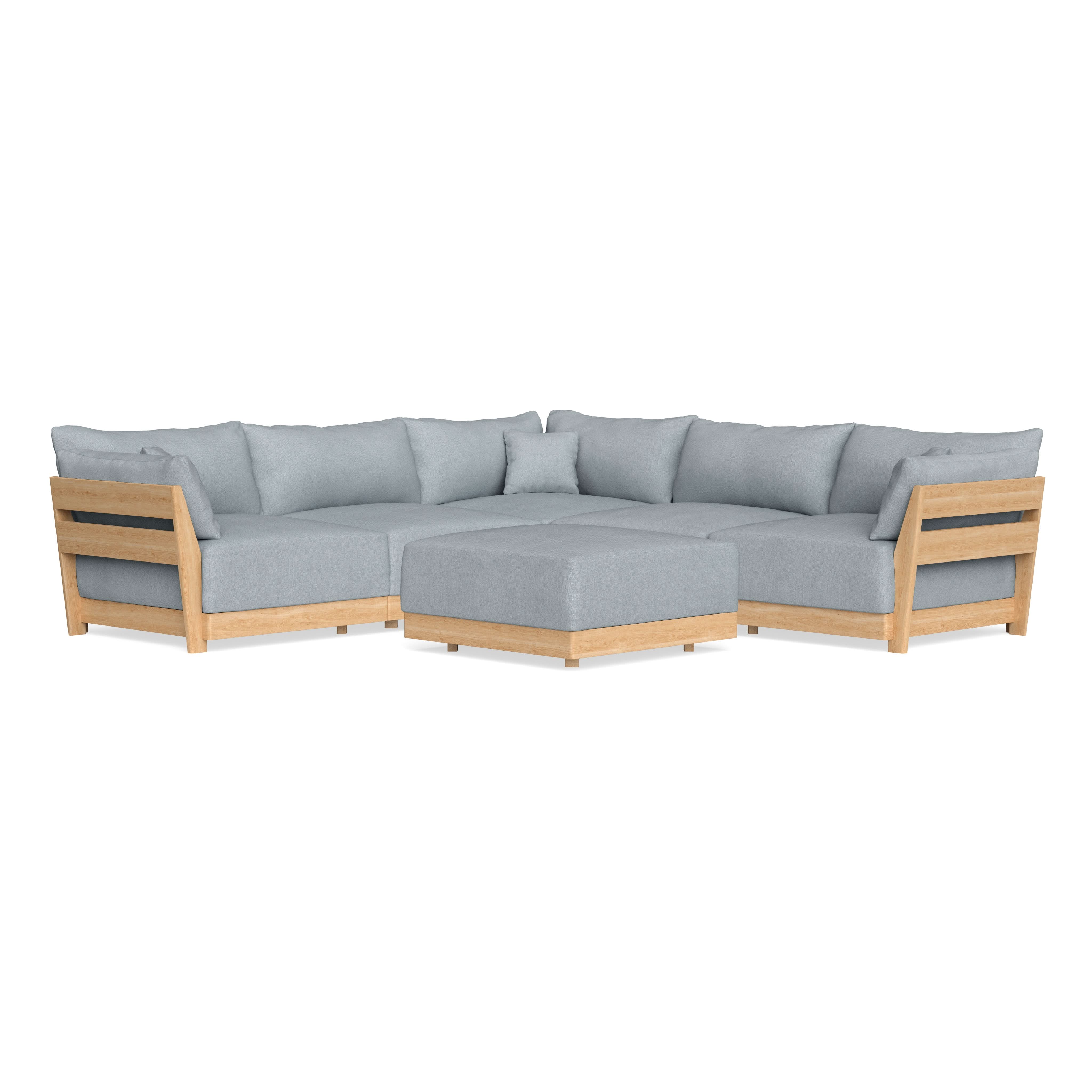 Modular Bondi Latte 5-Seater Corner Sectional + Ottoman in Ash | Memory Foam Blend