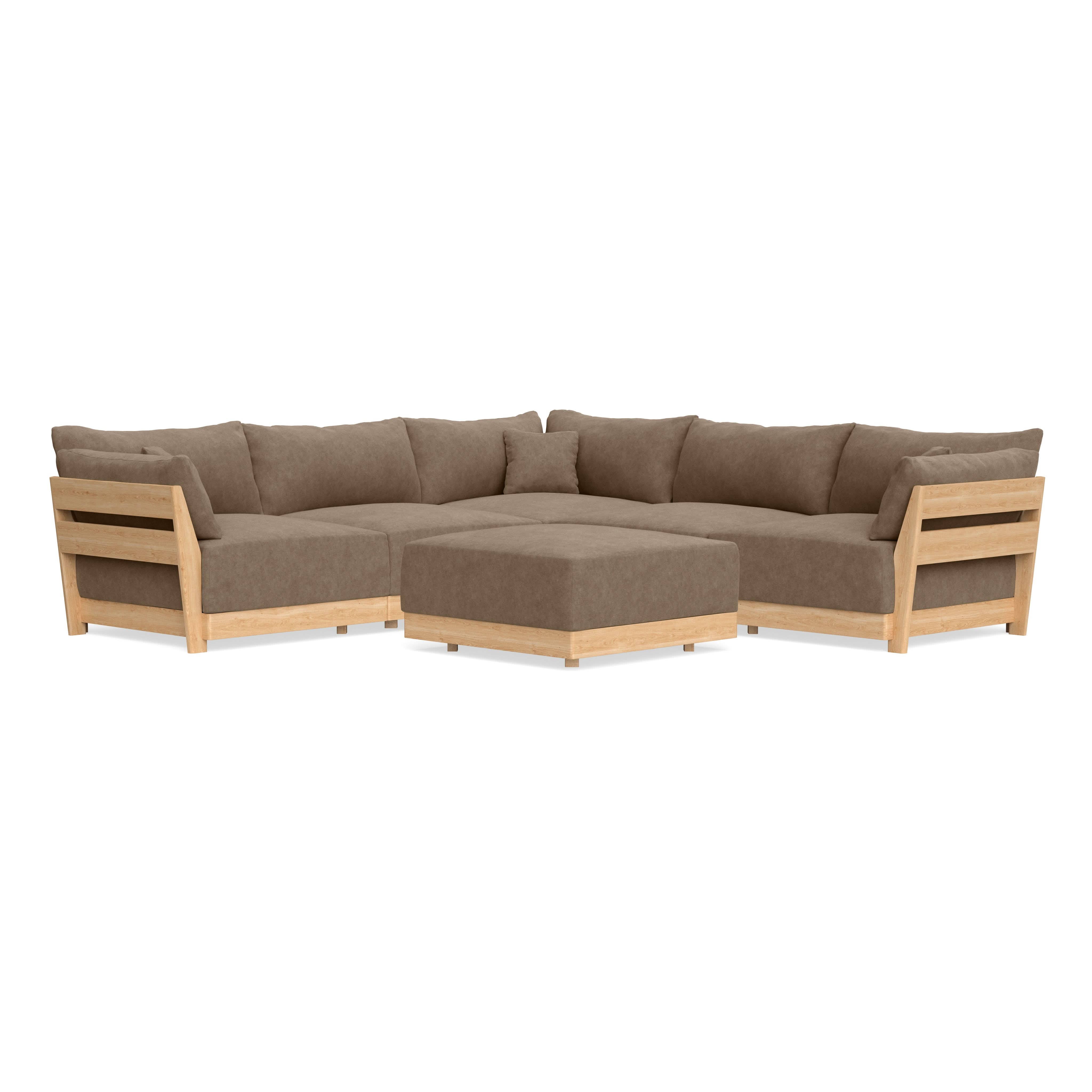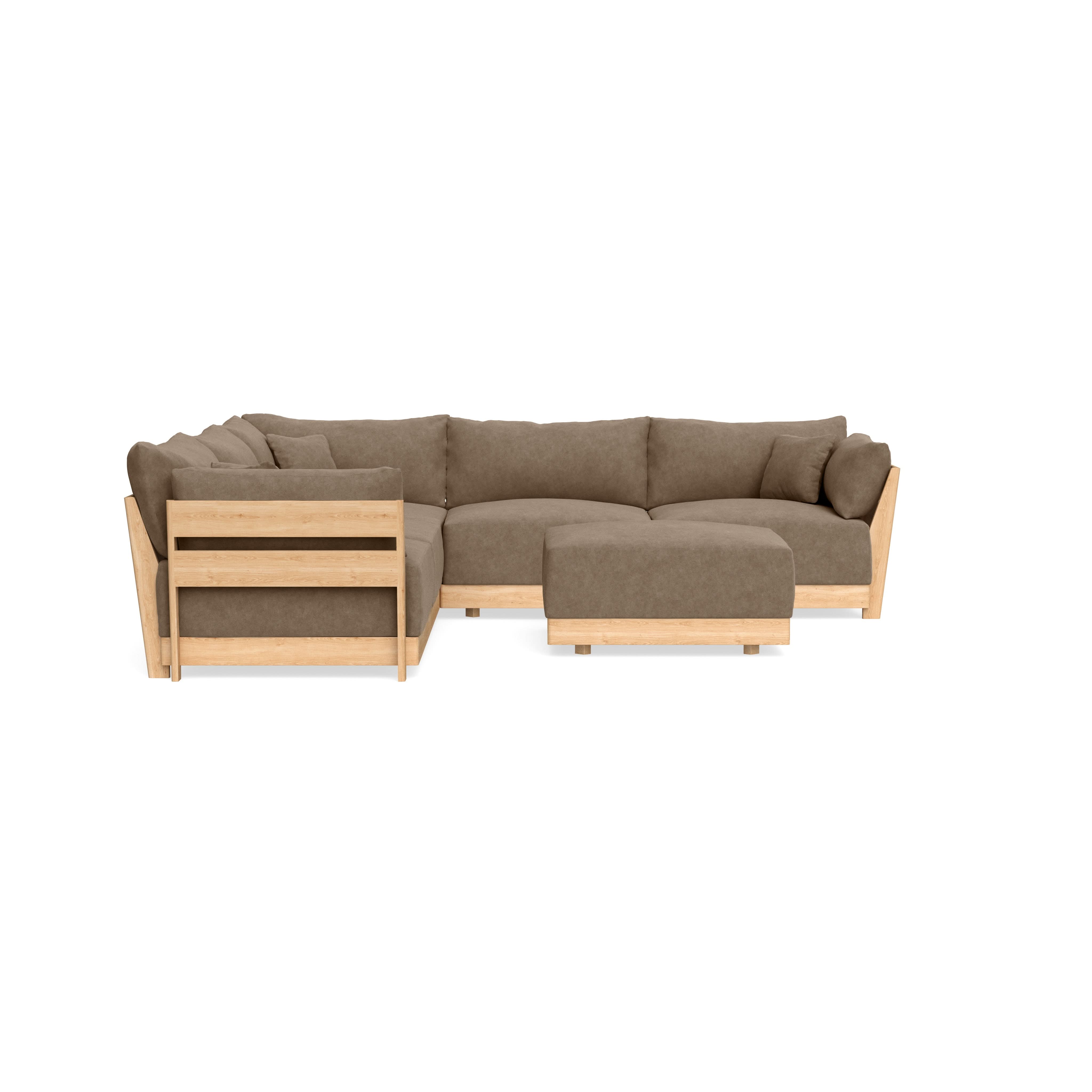 Modular Bondi Latte 5-Seater Corner Sectional + Ottoman in Coffee | Classic Blend